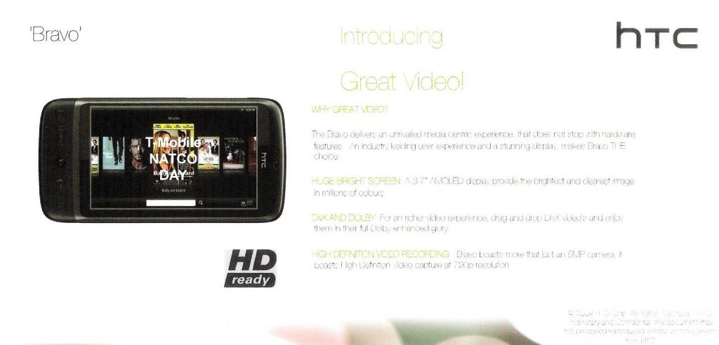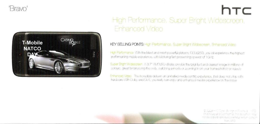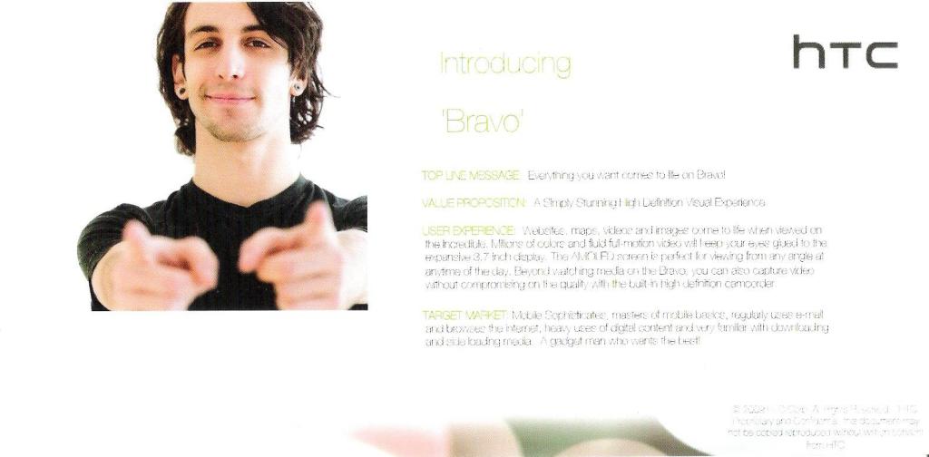 HTC's device line-up for the first half of 2010 has apparently leaked, courtesy of xda-developers, after a prototype brochure fell into the wrong hands. The range consists of five Android devices and three Windows Mobile handsets, including the so-called hero model of 1H 2010, the Android-based HTC Bravo. The Bravo will pack the same 1GHz Snapdragon processor as the HTC HD2 along with a 3.7-inch AMOLED touchscreen and HD 720p video capture. Full line-up details after the cut.Updated: We've contacted HTC for a comment, and unsurprisingly they're not confirming anything. "We cannot comment on speculation or rumour," HTC tell us, "but we're excited about our upcoming roadmap and encourage you to watch this space."