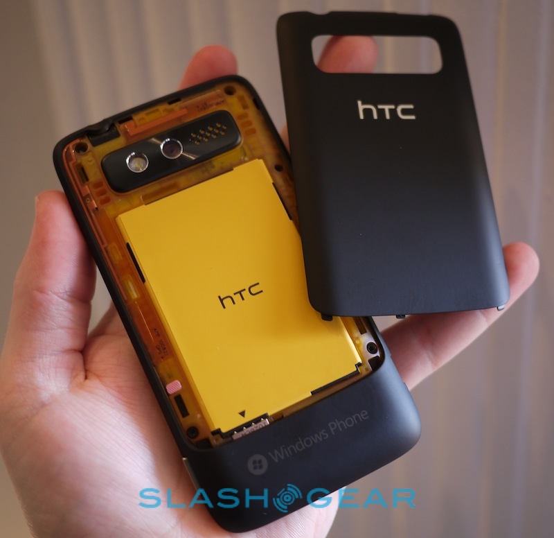 Continuing on our hands on treatments of the just-announced plethora of Windows Phone 7 devices, the HTC 7 Trophy lines up to get handled and photographed. The moment we picked up the device, we were immediately reminded of the HTC Desire. Even the battery cover feels directly inspired by the previously released Desire, featuring the same method of removal, and the same texture. Not that that's a bad thing, especially considering HTC manufactured both handsets. But, the Trophy does feature a (very) small increase in screen size, with its 3.8-inch display.