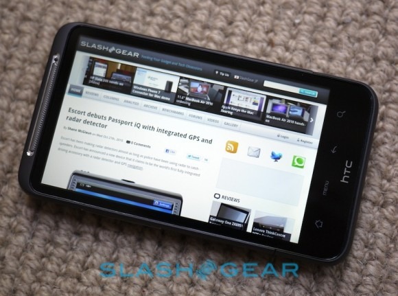 Android's WebKit-based browser is one of the best around on smartphones today, and the HTC Desire HD internet experience is no different. As you'd expect, it supports pinch-zooming and double-tapping triggers quick and accurate text-reflowing to better suit the screen. There's not a huge amount of zooming necessary, however, what with 4.3-inches on offer. The combination of the second-gen Snapdragon CPU and a healthy chunk of RAM keeps things moving swiftly, even with multiple windows running, and rendering is quick. You also get in-page Flash video and animations, since the Desire HD supports Flash Player 10.1.