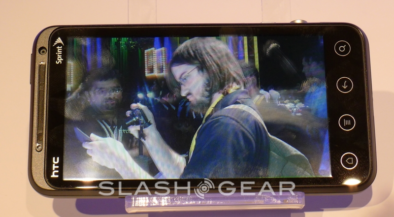 Looking at the device dead-on, straight-on to the screen, that's when you're going to get the best 3D look. They say they're "working to improve this" meaning they'll hopefully have a better viewing radius by the time the device is released, but for now, make it your duty to look at this screen with no angle whatsoever. This device is neither heavy nor light, really weighing in at a heaviness we've grown to expect from EVO devices. Once this device hits is final form, we'll get some weights out to get the number utterly correct. Thinness again is very similar to the EVO's of late, the form factor not all that new.