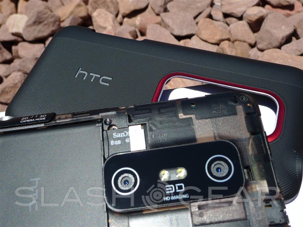 Basically there are two things to focus on here and those are the dual-core 1.2 Ghz Snapdragon CPU, and those dual 5MP cameras on the rear to capture 3D video. Right away I can tell you the phone seems blazing fast and that is probably mostly thanks to the dual-core CPU, even things like flipping through the Sense UI homescreens until it starts spinning was smooth as can be and better than on the Sensation 4G for some reason.