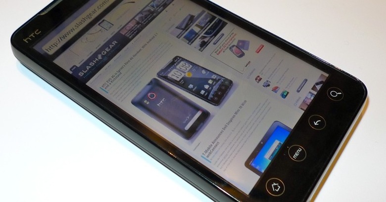 WiMAX coverage for our demo wasn't as strong as we might have hoped, so we'll have to reserve judgment on the EVO 4G's surfing skills. Still, the ability – in planning, but likely to arrive by the time the phone hits the market – to surf over 4G while simultaneously using the CDMA/EVDO Rev.A connection for voice calls could prove to be a game changer. The HD2's narrow row of physical buttons along the bottom of the touchscreen have been replaced by four capacitive keys, and up top there's a power button plus a volume rocker on the side. We're a little disappointed that – given the obvious emphasis on imaging skills what with the 8-megapixel camera – there's no dedicated camera key on the side, however.