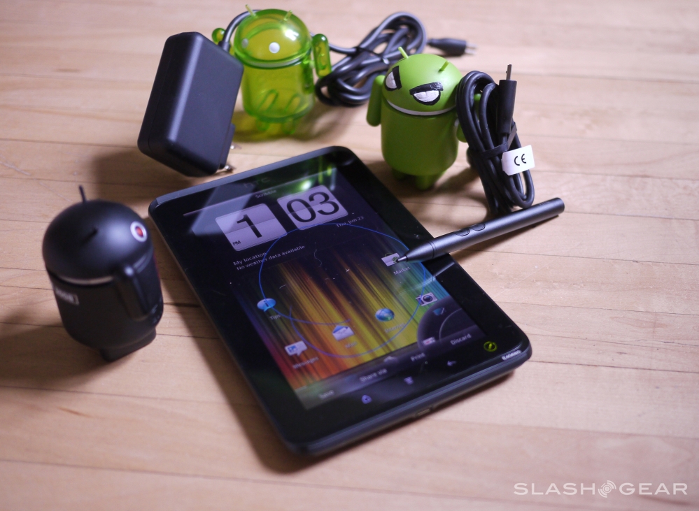 This device is small enough to fit in an adult-male sized pair of jeans, large enough to be called a tablet – it's got a 7-inch display if you did not know already. This device runs Android 2.3.3 Gingerbread, has a single core 1.5GHz Qualcomm Snapdragon processor, and you'll be able to connect to the internet with WiFi or WiMAX. This device is capable of sending and receiving SMS messages, but as far as we can tell, there's no phonically going to be coming in or going out without some sort of special app like Skype.