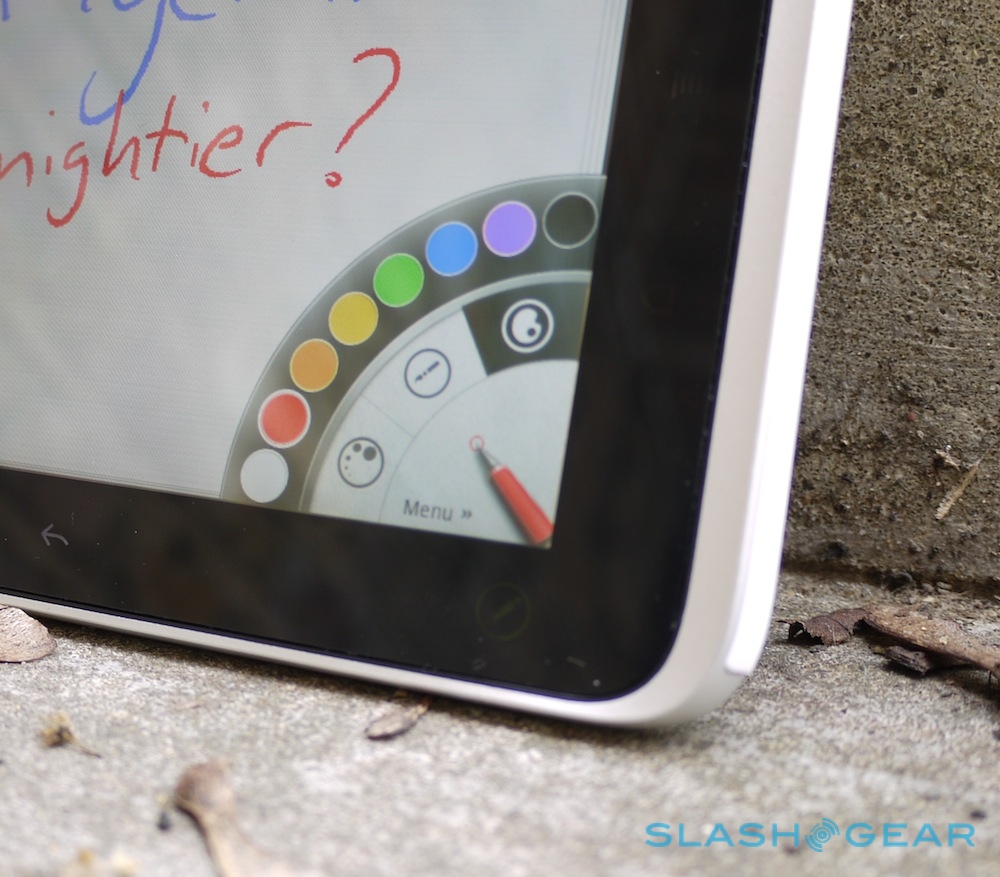 If your mouth has already puckering with distaste at the thought of a stylus, don't be so quick to judge. The Flyer's pen is leagues away from the nasty plastic toothpicks of old-style resistive touchscreen devices. Its smooth nib glides nicely across the Gorilla Glass of the Flyer's display, accurate and lag free. HTC took responsibility for adding digital pen functionality to Android, and they've done a solid job; we'll cover exactly how they've integrated them in the software section.