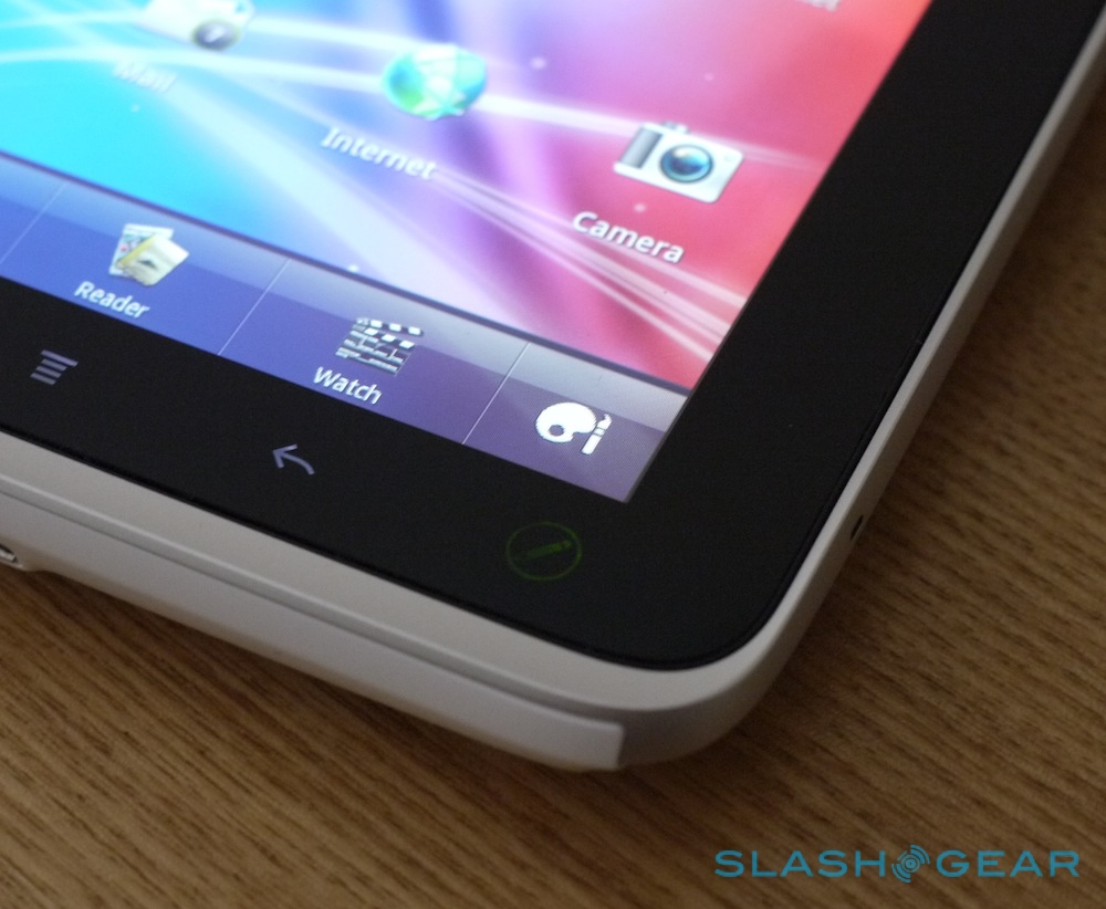 Like the Galaxy Tab, the Flyer has a 7-inch 1024 x 700 capacitive touchscreen. This uses an LCD panel, and comes through bright, clear and with decent colors. The Flyer doesn't get the rotating button icons of the Incredible S, but it does pack a second set of the touch-sensitive keys: hold the tablet in landscape orientation and you get backlit home, menu, back and "stylus" buttons underneath the short edge of the display; rotate it into landscape orientation and you get the same buttons underneath the long edge. It's all very clever, though ironically considering how we found ourselves holding the Flyer, we wished we could choose which set of keys were active since often it would've been easier to reach the alternate set.