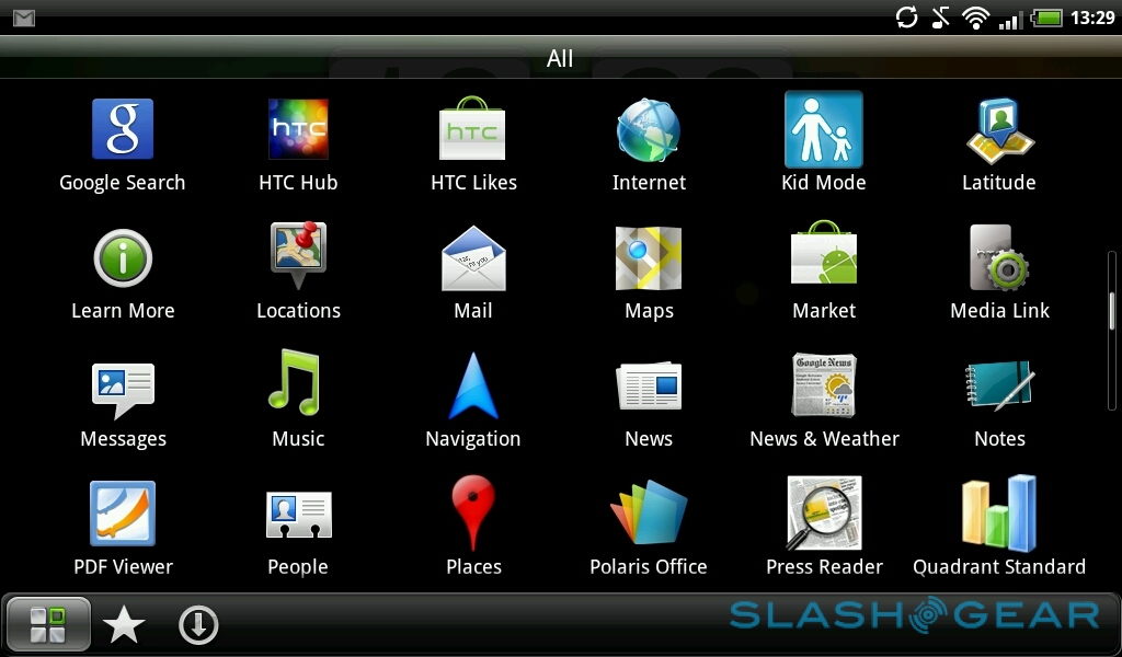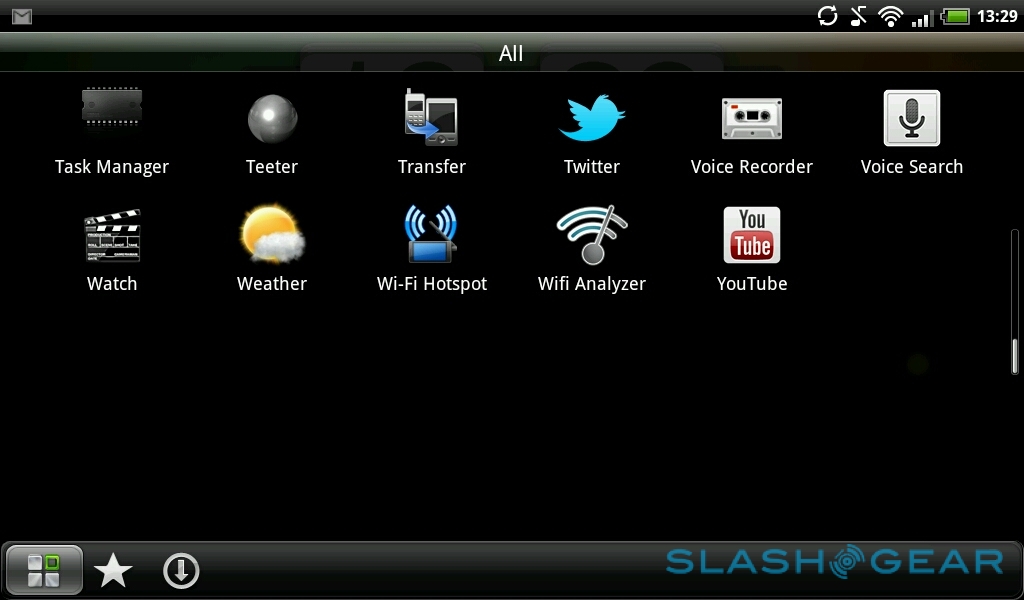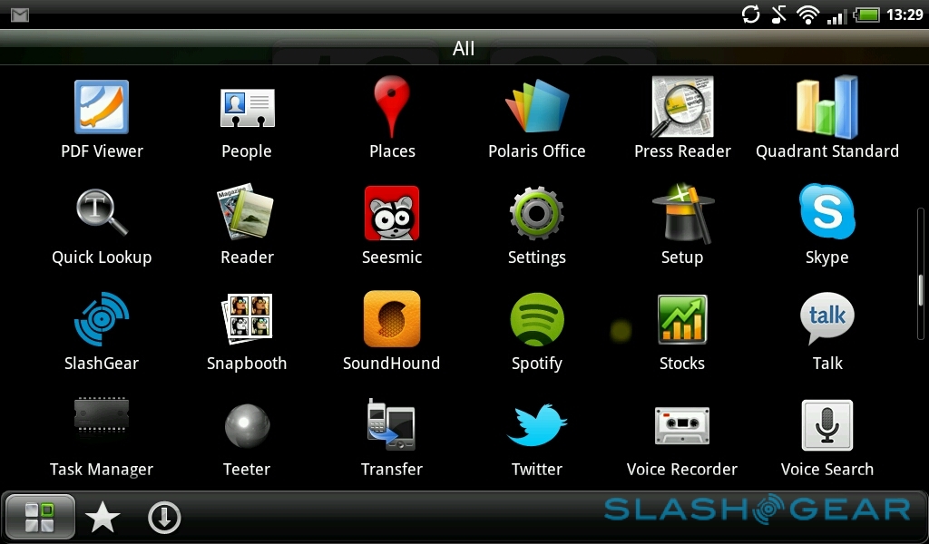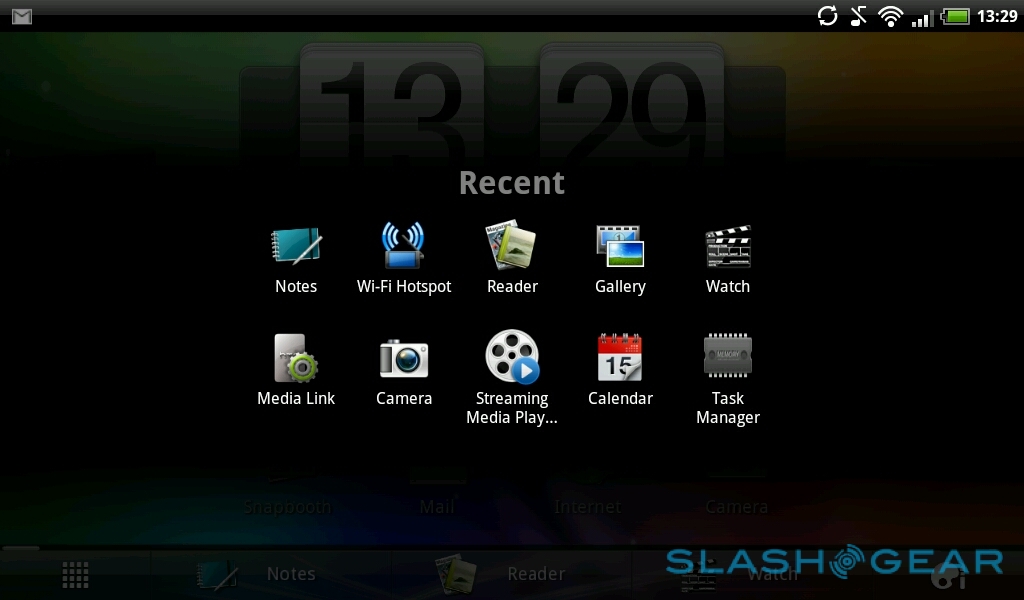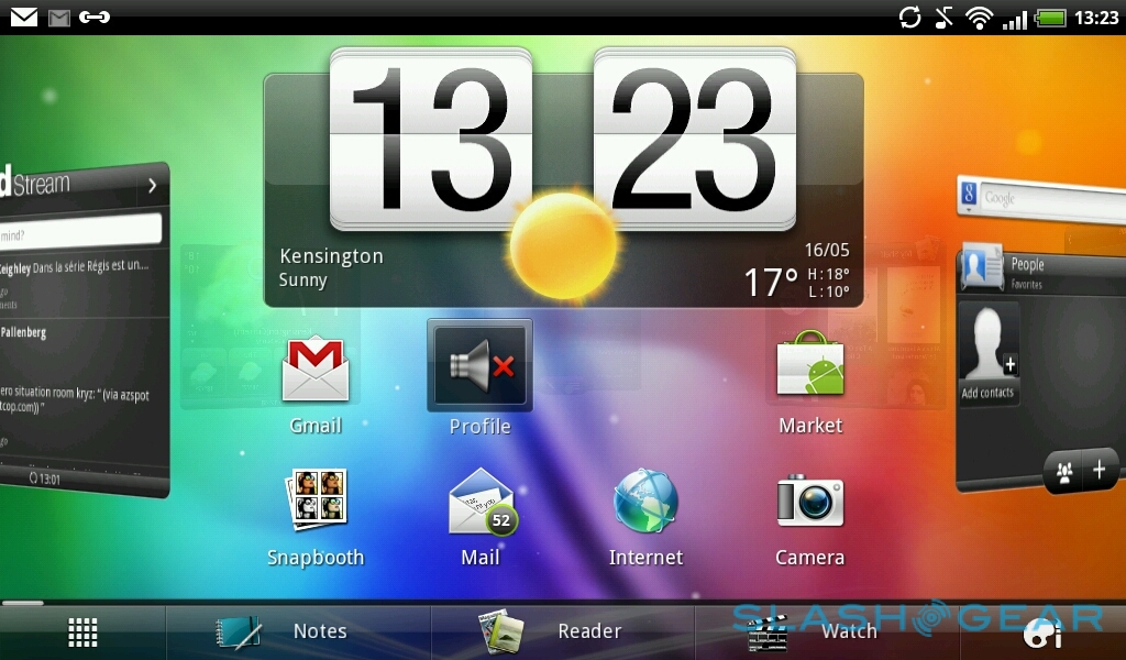 The Flyer is smaller than the other recent Android tablets, and it runs older software, too. Rather than Android 3.x Honeycomb, as on the XOOM, G-Slate and Galaxy Tab 10.1, HTC has opted for Android 2.3 Gingerbread, the latest version intended for smartphones. They've not left it untouched, of course; HTC Sense makes its usual appearance, though here with some significant modifications to the familiar UI to take into consideration the tablet form factor.
