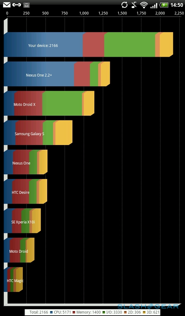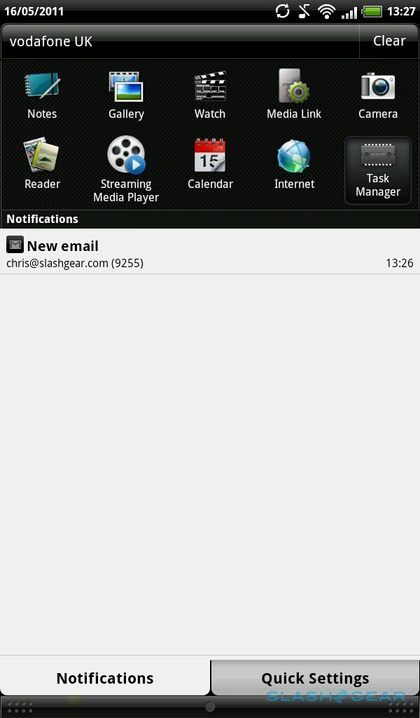 The usual HTC array of software is preloaded, so you get FriendStream with Facebook and Twitter feeds, the Media Control app for handling DLNA streaming, and the heavily-animated Weather app complete with homescreen widget. There's also Amazon's MP3 store app, HTC Hub for wallpaper, ringtone and other downloads, HTC Likes with suggestions, Locations, the Teeter game, a Task Manager app and WiFi Hotspot, for sharing the 3G connection with up to eight WiFi-tethered clients.