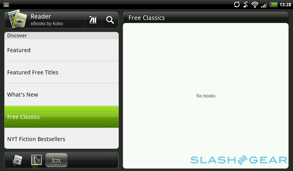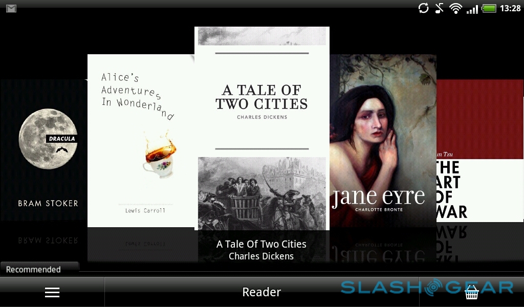 If you're a Kindle, NOOK or other ereader platform user, you can obviously load up your app of choice on the Flyer from the Android Market. HTC, though, would rather you use its Reader app, offering a variety of titles – both free public domain ebooks and newer, paid ones – for download direct to the slate.