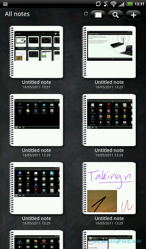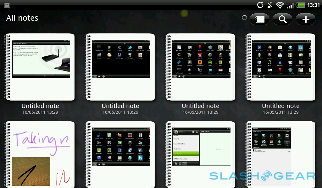 Notes is where the Flyer's Magic Pen comes into its own, and is arguably the center-point of the whole tablet. As we said, HTC took it on itself to add active stylus support to Android, and Notes is where that energy pays off. On the face of it, it looks like any other memo app: a place for a title then room for notes. However, on the Flyer those notes can either be thumbed in using the on-screen keyboard, or written in using the Magic Pen. The same radial menu of pen types, colors and other tools – offering highlighters, pencils, felt-tips and more – pops up, and you can sketch or scribble away to your heart's content.