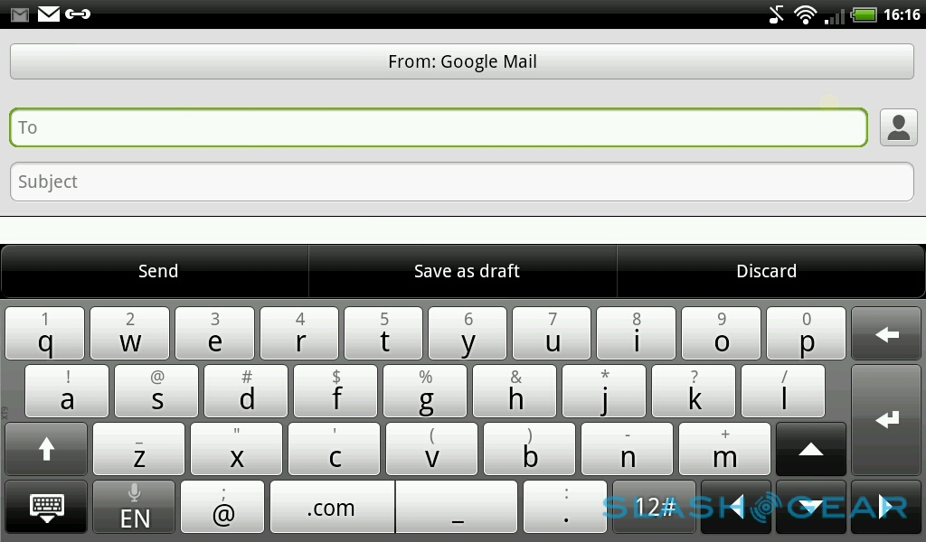 Unfortunately, you don't get Google's own tablet-version of Gmail, instead the regular smartphone app. That's fine on a phone, but is stretched and wasteful with space on the Flyer's 1024 x 600 panel. Similarly Google Talk is the basic phone version. 7-inch displays are often ideally-scaled to type on with both thumbs, and the Flyer is no different. HTC's custom keyboard doesn't stretch to a dedicated number row, but does have navigation keys, sensible auto-predictions like @ and .com in email text boxes, and simple access to Android's voice recognition. The auto-suggestions are also accurate, with prompted words popping up with no lag or delay.
