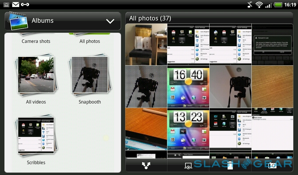 In addition to the standard camera and camcorder apps, there's Snapbooth, a somewhat gimmicky app that uses the front-facing camera to take vanity shots that can be mangled with various special effects. It's good for a few minutes fun, at least. HTC's online Sense suite also gets an outing, offering remote access, tracking and locking of the Flyer. Unfortunately, you can only have a Sense account active on one HTC device at a time – signing in on the Flyer prompted us to unlike the account from the HTC phone it was currently being used with. Considering the Flyer lacks phone functionality on its own, that means the HTC-faithful will have to pick whether they want to use their Sense account with the tablet or their smartphone, rather than having it on both.