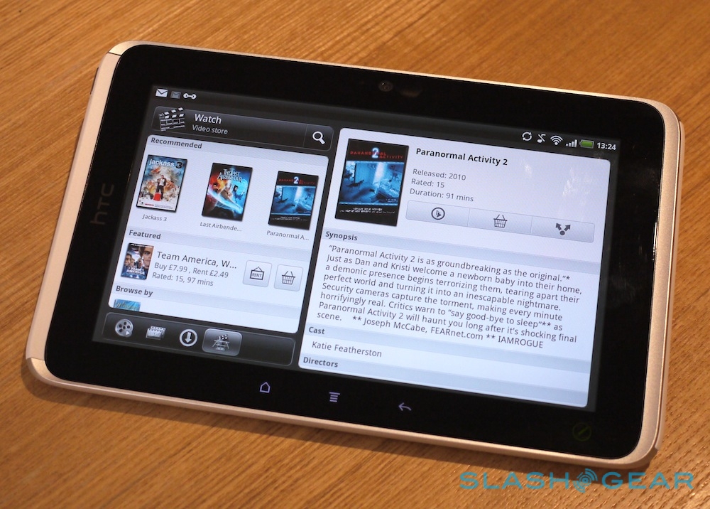 Tablets are generally used for browsing and for multimedia consumption, and so HTC Watch is the company's attempt to make some money off the latter. Basically a movie and TV episode store, it offers both rentals and purchases – depending on title – with prices ranging from £7.99 to £9.99 to buy 720p movies in the UK or £2.49 to £3.49 to rent them. TV episodes come in at £1.49.