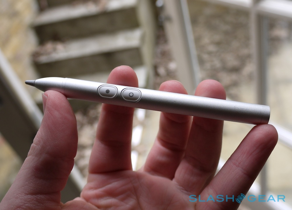 The pen itself matches the Flyer's brushed aluminum, and has a pair of buttons on its side. One puts the stylus into highlighter mode, the other text selection. It runs on an AAAA battery – HTC reckons you should get a few months use out of it. Places where the pen can be used are flagged up by the stylus button turning green; tap that, and a radial menu of pens, tools and colors pops up in the lower left-hand corner of the screen.
