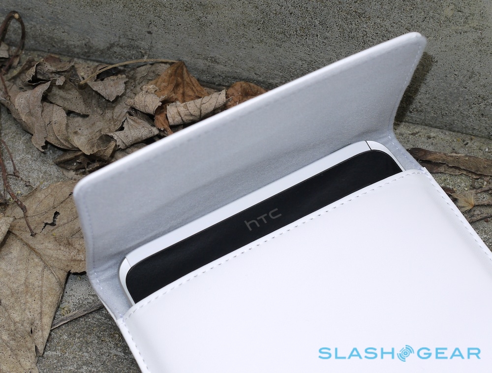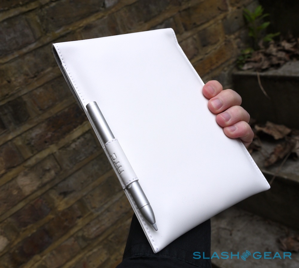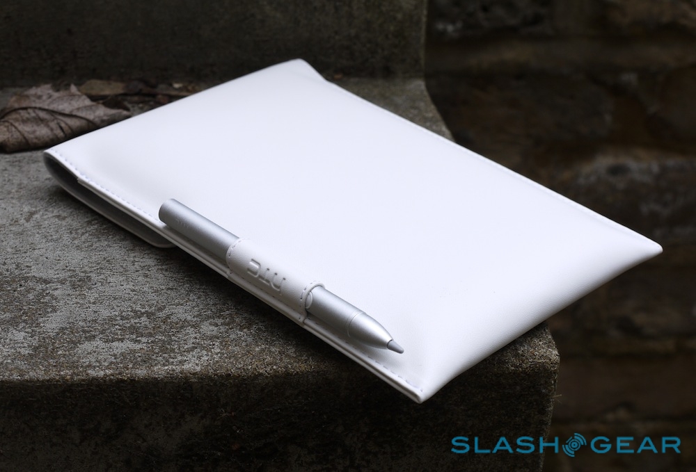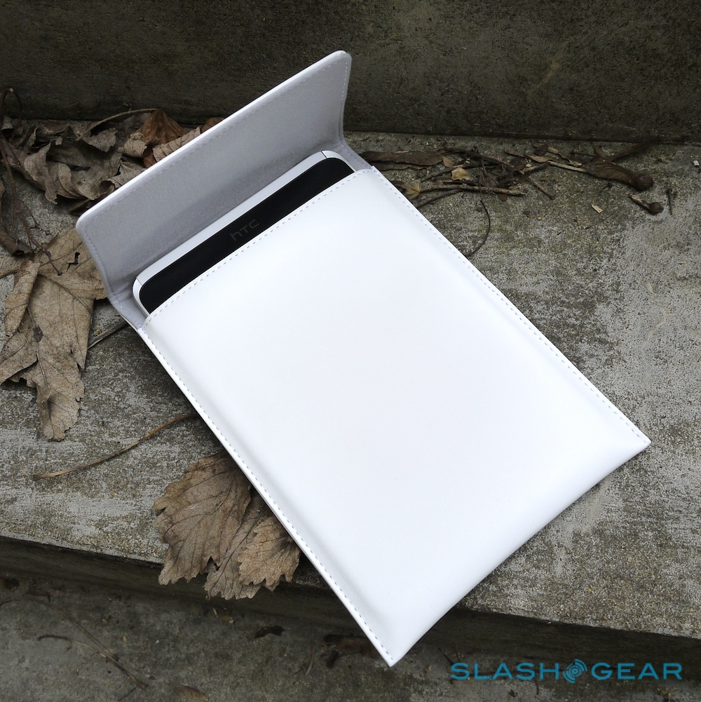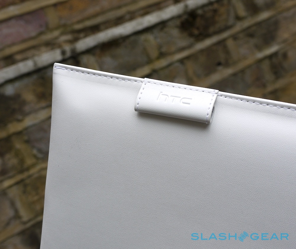 What HTC hasn't accommodated is the stylus itself. Unlike tablet PCs and resistive touchscreen phones, there's no slot or silo for the Flyer's digital pen to hide in; instead, HTC bundles a leather slip case with a magnetic flap and a tightly-fitting loop into which the pen can tuck. While we like the idea of a bundled case, it's not entirely ideal. For a start, the white finish – although matching the Flyer's color scheme – seems to invite scuffs and blemishes; leaving the pen on the outside and, for the most part, unprotected also feels risky. Finally, although reasonably close-fitting, it still adds some bulk. That can make the difference when it comes to pocketability: bare, you can easily slot the Flyer into an inside jacket pocket or even the back pocket of your jeans, something that can be trickier or even impossible when the case gets involved.