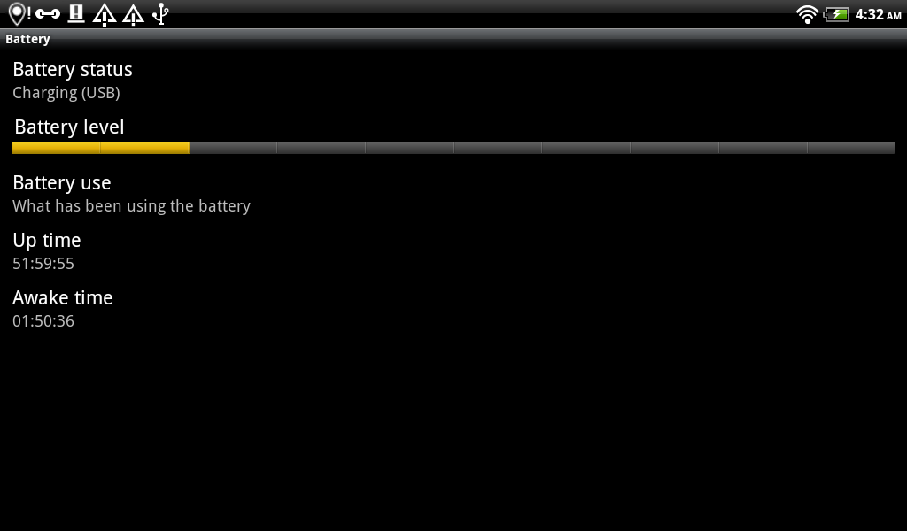 The battery on this device is a fairly impressive 4,000 mAh non-user-replaceable battery. HTC says that this battery should be lasting up to four hours of video playback or between 820 and 1470 hours on standby. So far we've been using it for several days directly out of the box without having to charge it, using it a medium amount at very spread-out intervals. Real world use is giving us several days use for real. Charging overnight encouraged, but not required!