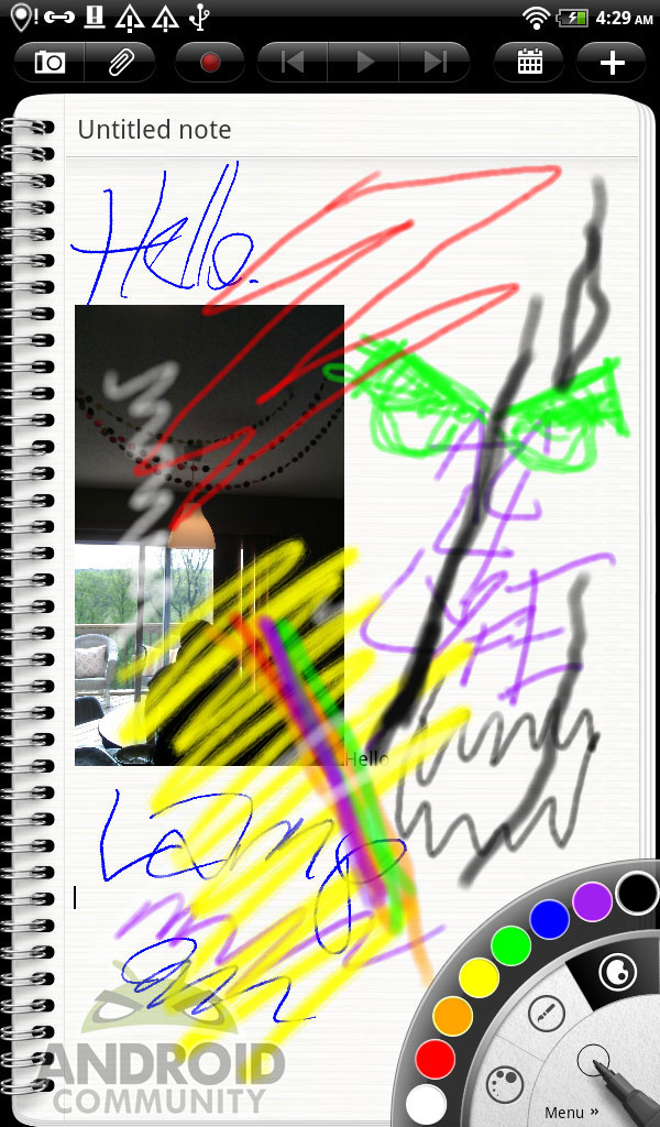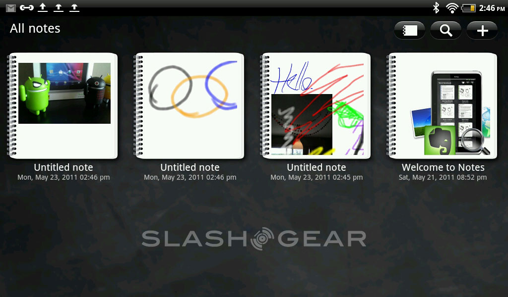 Notes is a new application made specifically for this tablet and its many ways of collecting media, including sound, video, photos, and scribbles, notes, and drawings via the Scribe pen. You may also type via the on-screen keyboard. The greatest part about this app is that it's connected to Evernote. This system is one that saves notes and writings of yours from any number of devices in the cloud for later reading. It's not of the biggest names in note-taking and HTC's been very smart to work with them on this device. Well played!