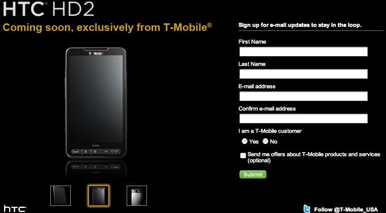 HTC HD2 Confirmed For T-Mobile USA In Spring 2010