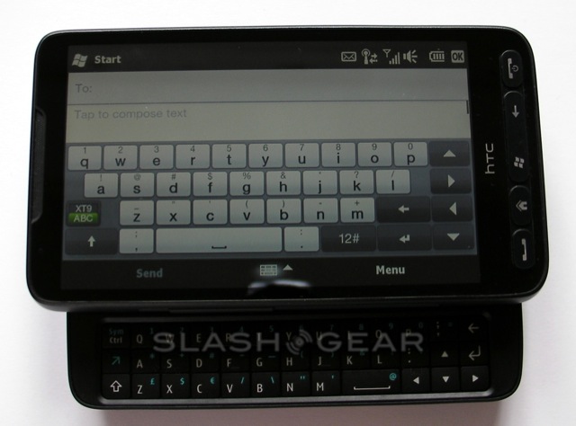 In our HD2 unboxing yesterday, we suggested that "Even in the short time we've had the HD2, we're already faster at typing on it in [landscape orientation] than we are with most hardware keyboards on smartphones." That's because of the combination of the on-screen keys being large and ideally sized for two-thumb typing, holding the HD2 horizontally and reaching across with each digit, together with HTC's excellent auto-correction and predictive text.