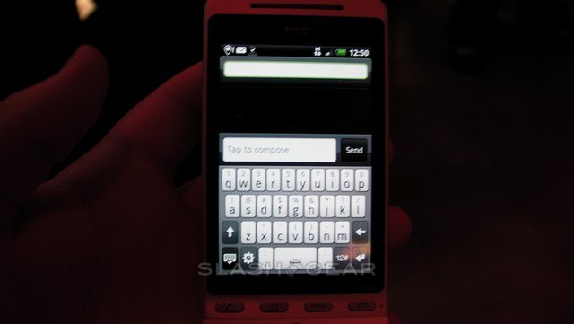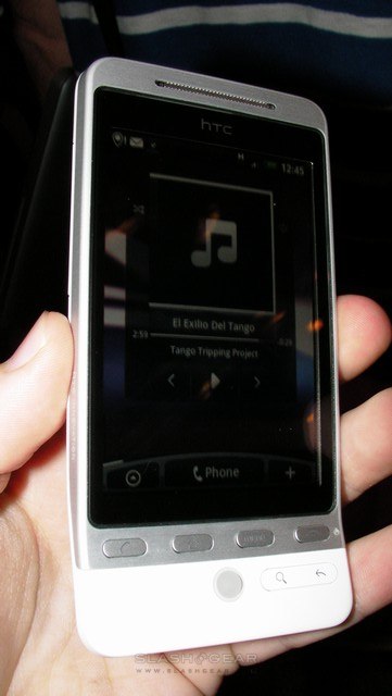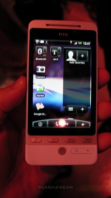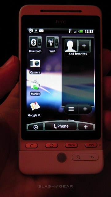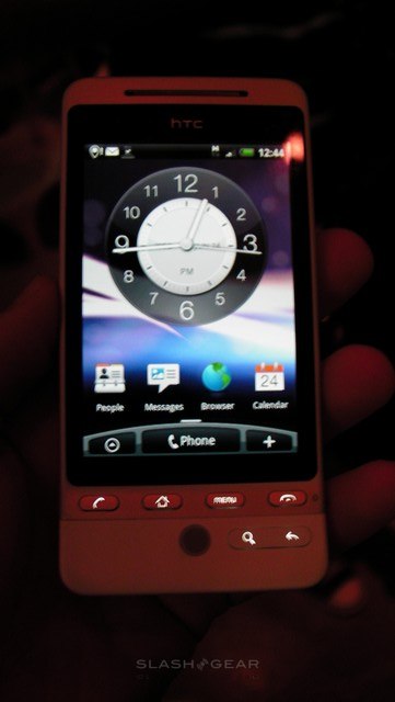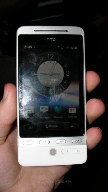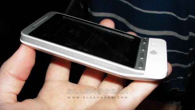 In the hand, the Hero feels slimmer than the Magic, not least because of the bevelled edge. The HTC rep we talked to wasn't sure whether the pre-production handset you see here has the Teflon back coating or not; it doesn't feel especially different to a normal matte-finish panel. The fingerprint-resistant screen is, as you'll see in the shots, not particularly good at avoiding smudges in the first place, but like the iPhone 3GS it sheds them with a quick wipe.