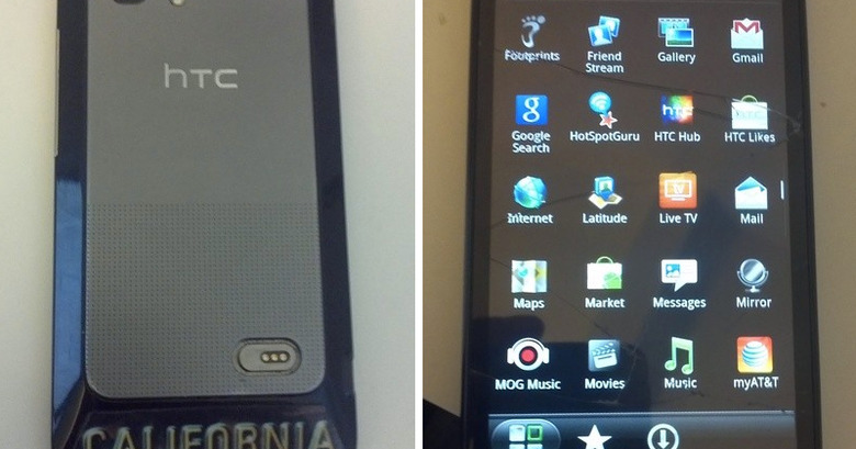 In a series of photos taken by a member of XDA Developers forums, we're here able to see what may well be the upcoming Android device by the name of HTC Holiday. What we can see here is that the smartphone has a massive "CALIFORNIA" sticker or case on the back, this leading us to believe that either the phone will be released with different cases in different regions of the USA OR someone slapped a nasty ol' sticker on the thing. In addition to this, we're seeing a rather thin device with a dual-core 1.2GHz processor, a 4.5-inch qHD display at 960 x 540 pixel resolution and a very possible AT&T release.