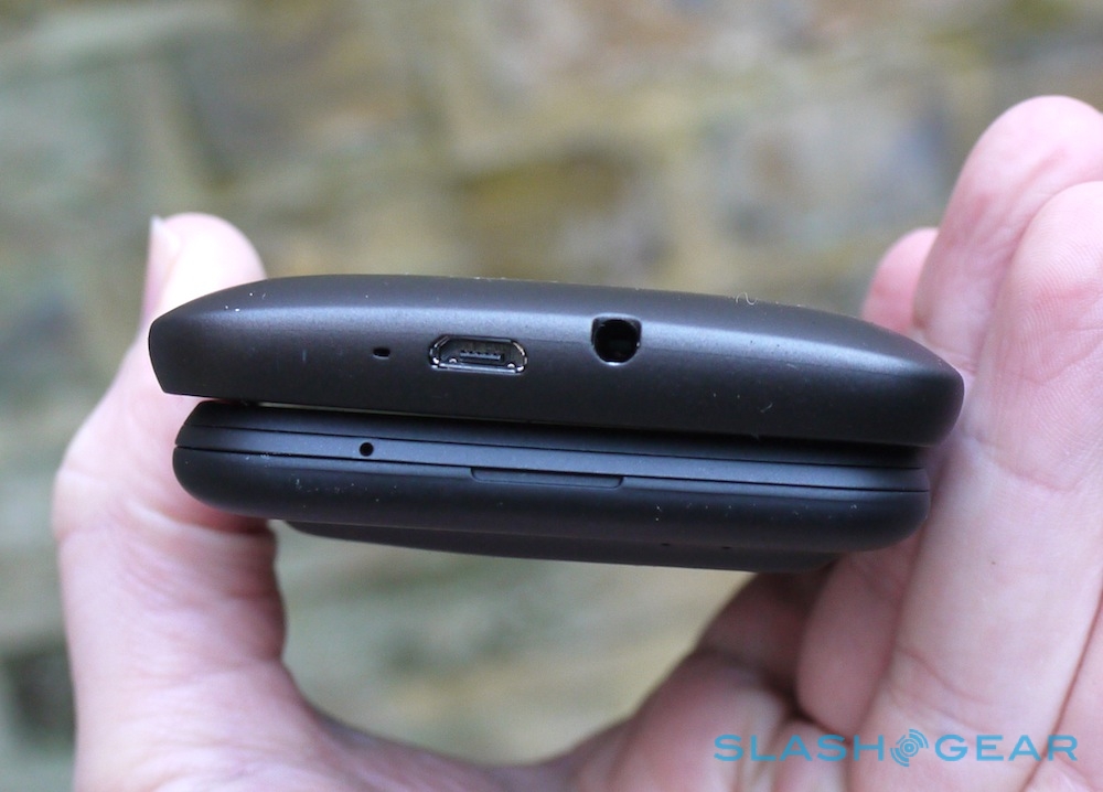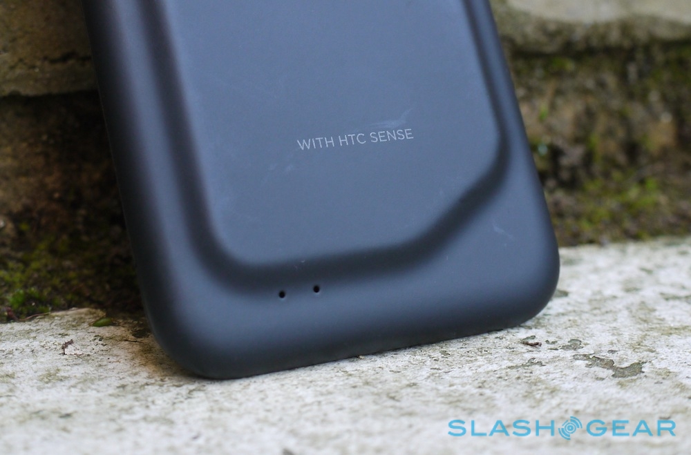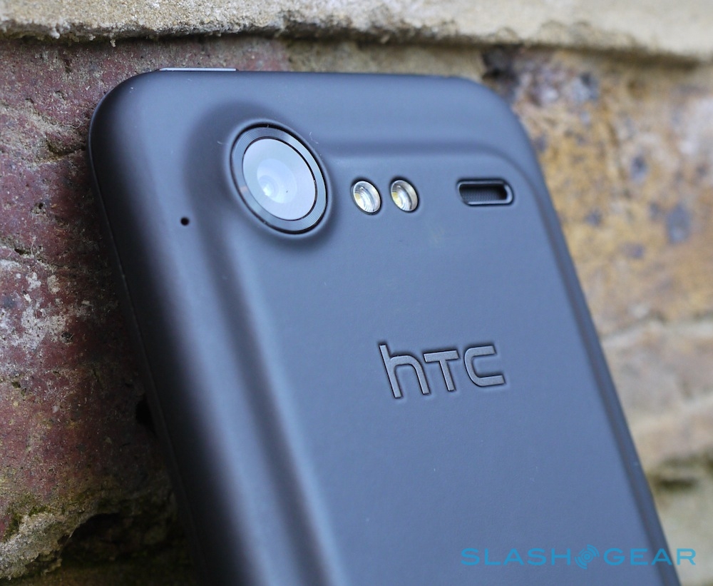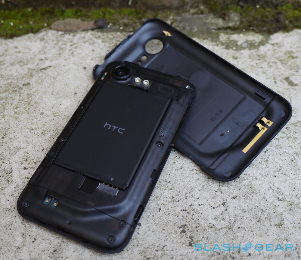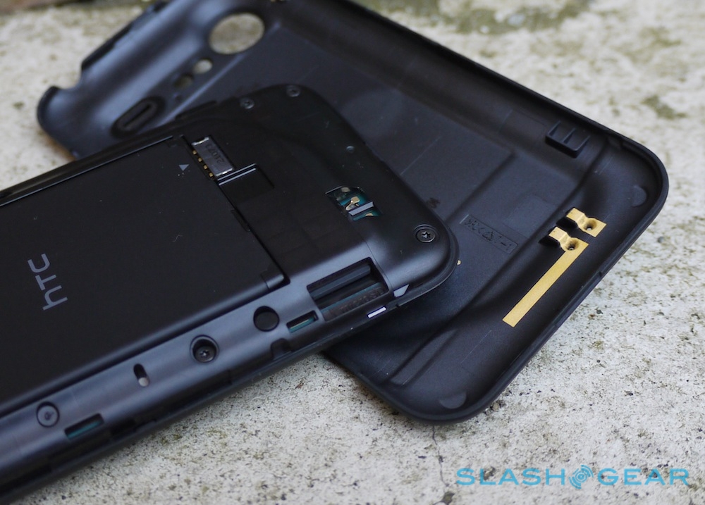 Power/lock and the 3.5mm headphone jack are on the top edge, while on the back is an 8-megapixel autofocus camera with dual-LED flash, a single speaker, and a subtle embossed HTC logo. Peel off the back cover and there's a microSD card slot, a removable 1,450 mAh battery and, underneath that, the SIM card slot.