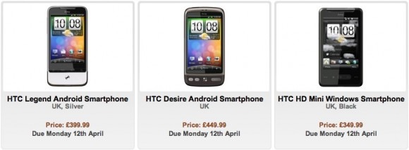 HTC Legend, Desire & HD Mini Preorders Tip April 12th Release