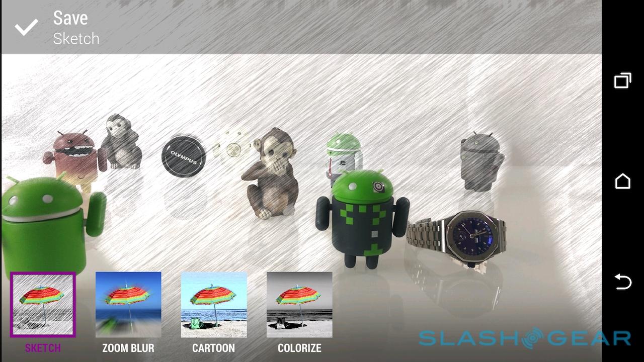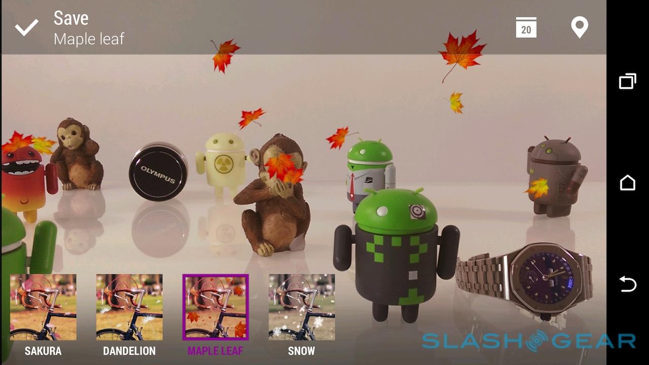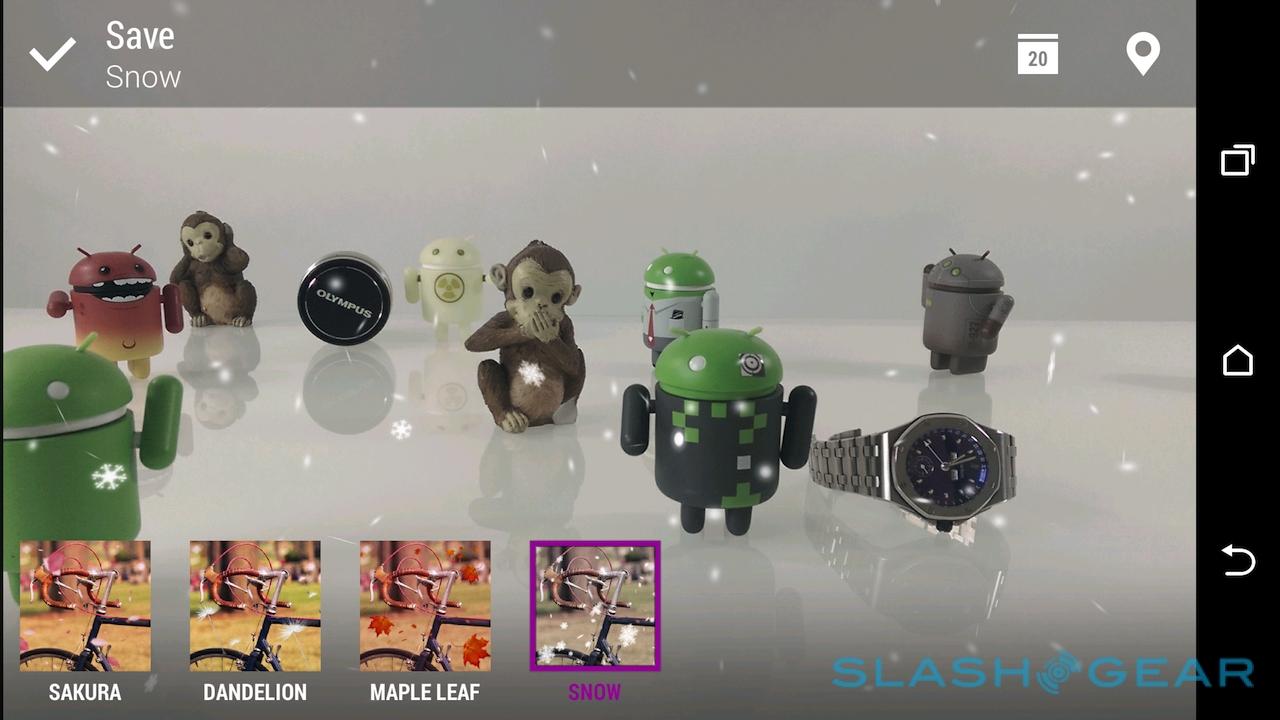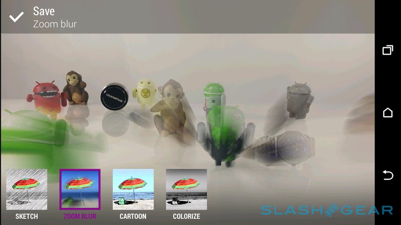 HTC's Zoe system – which captures both a rapid-fire series of twenty stills and a three second Full HD video simultaneously – now gets its own distinct mode in the menu, with a few tweaks along the way. Tapping the shutter button takes a single shot; holding it for up to three seconds takes a Zoe. Keep holding, meanwhile, and it automatically switches into normal 1080p video recording. As before, Zoe and regular images are automagically curated into thirty second "Highlight" reels, complete with user-customizable background music and filters.