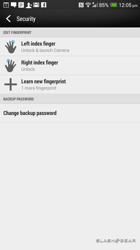 Three fingers seems an artificially restrictive limit – though HTC hinted that it was one that could be changed for the right reasons – and there's no way to trigger an app with a fingerprint but leave the rest of the phone unlocked. That would've been useful for handing over your One max to your kids and letting them get to games but not your email or the internet. Down the road, HTC is considering giving fingerprint sensor access to third party apps, the company told us, though for the moment the scanner only works for unlocking the handset, not replacing any password entry while you're actually using the device.
