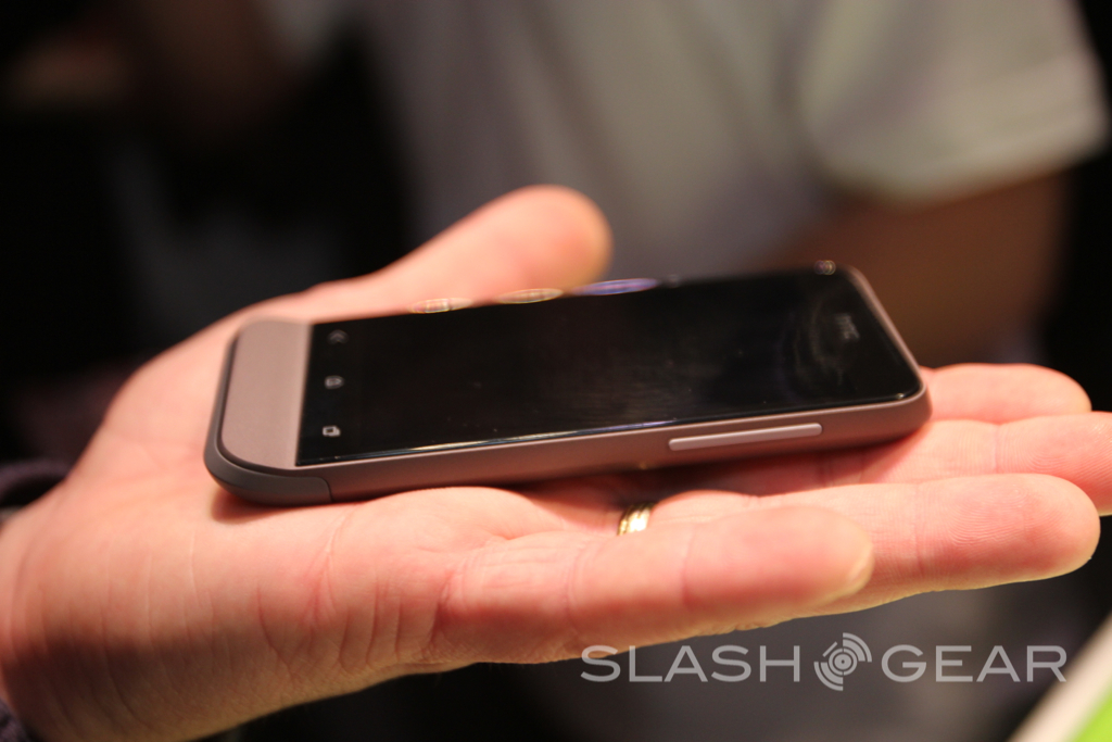 At 3.7-inches, the One V's Super-LCD WVGA display is bigger than that of the Legend, but HTC has managed to shave down the smartphone nonetheless: it's a slim, 9.24mm slab of metal with a slight jut to its chin. That chin does nothing but give you somewhere to rest your thumb, mind; there's no optical trackpad or buttons, with the touch-sensitive keys themselves being under the glass touchscreen itself.