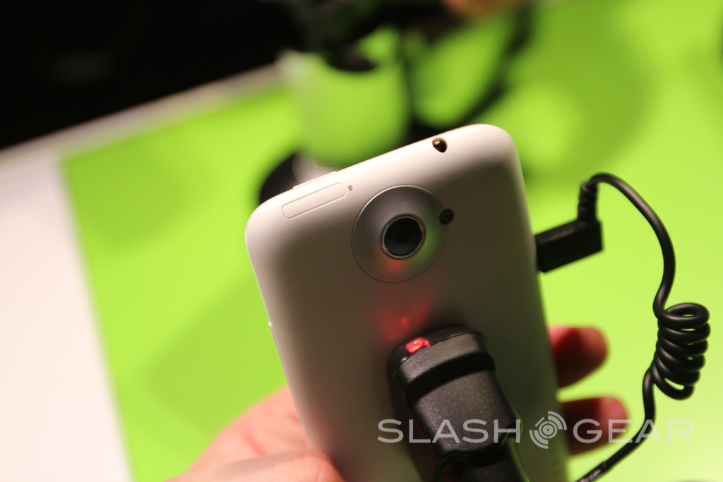A front-facing camera lives above the display, but the main action is on the back, where an 8-megapixel camera with an LED flash and 1080p Full HD video recording lives. HTC has used a Backside-Illuminated (BSI) sensor for improved low-light performance, together with an f2.0 lens that, the company claims, delivers 44-percent more light to the CMOS than a regular smartphone's f2.4. That means either better shots in mediocre lighting, or faster regular photos.