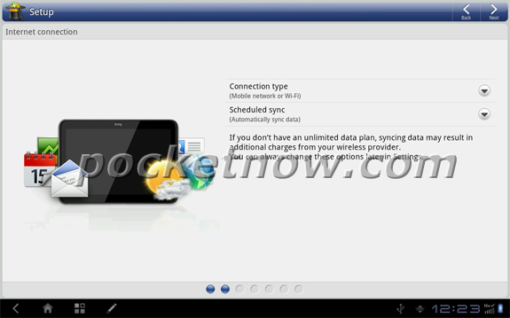 But as for its custom interface, it looks like the HTC Puccini will have plenty of AT&T bloatware preloaded, including AT&T Code, AT&T Family, AT&T MyText, and AT&T Navigation. It also appears that HTC has added its own stylus icon on the bottom of the screen where we typically expect the multitask switcher icon. This confirms the inclusion of Scribe, meaning the tablet will have a stylus-capable multi-touch display similar to the smaller HTC Flyer.