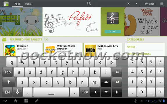 Additonally, HTC's custom interface adds a full ten-key number pad to the right of its virtual keyboard. Although not much else is known about the tablet, it's expected to hit later this year in time for the holidays.