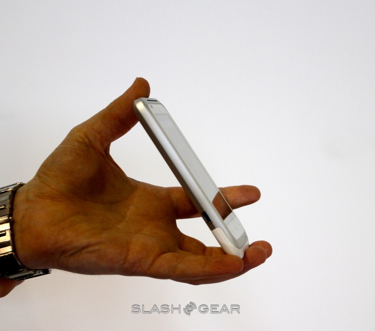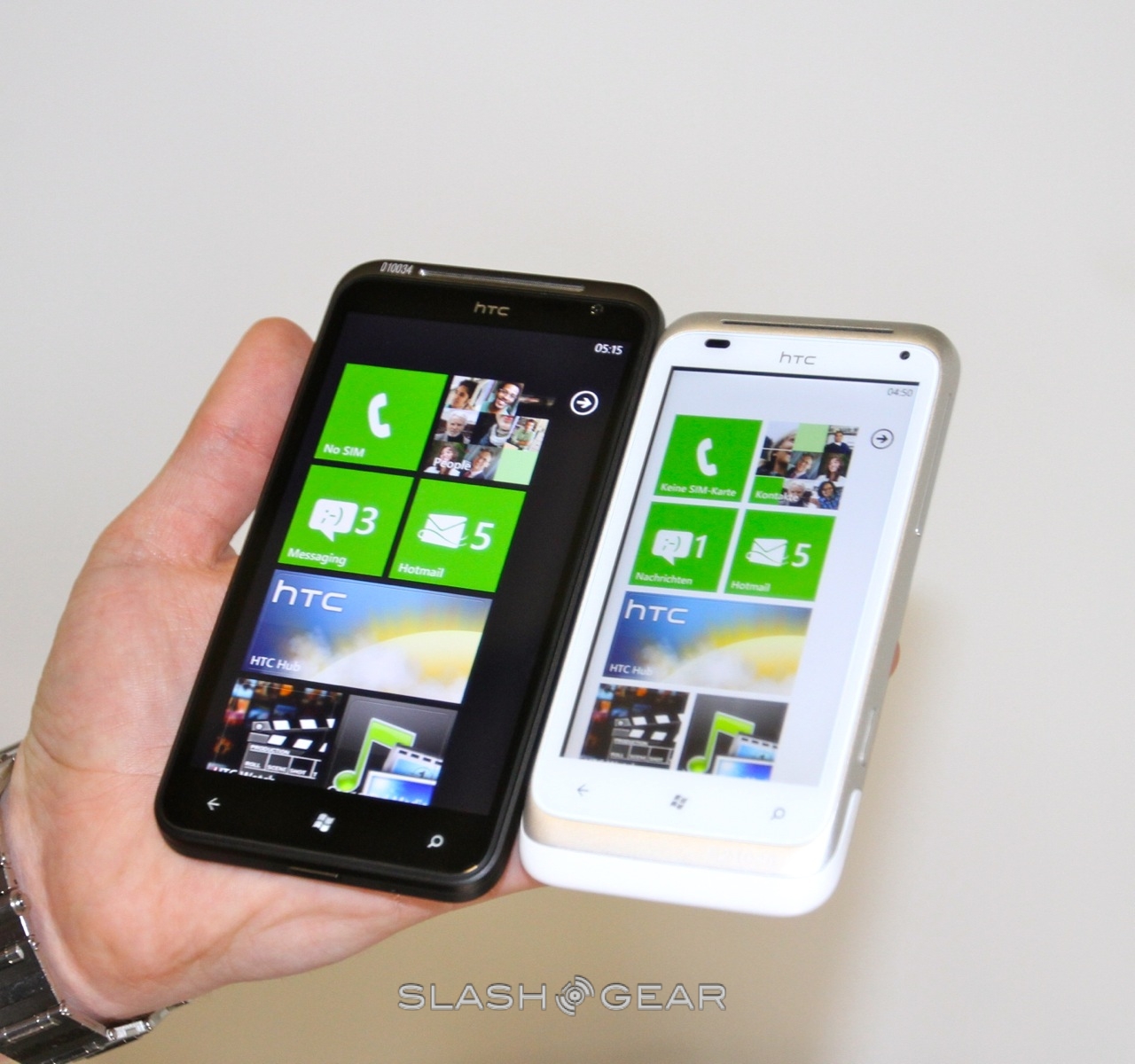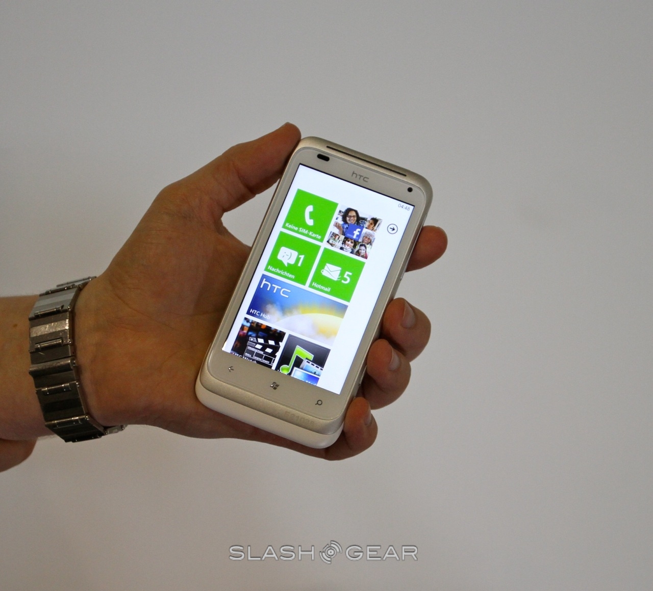 Build quality, as we've found with all of HTC's unibody devices, is strong and creak-free. The lower white panel slides off to reveal the battery and SIM card slot, and there's a dedicated camera key, microUSB port and 3.5mm headphone socket. Size-wise, the 120.5 x 61.5 x 10.9 mm handset is more compact in the hand than the first-gen HTC Trophy, despite offering the same screen size. It also has better viewing angles.
