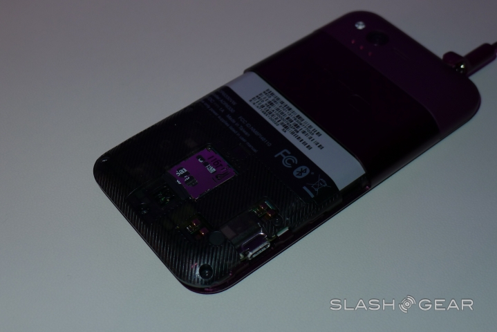 From the outside, things look solid. HTC's unibody design language is evident, and the plastic and metal components are creak-free. It's definitely very similar to the Incredible series, though more like the original rather than the second-generation model, and the soft-touch finish to the majority of the phone is pleasing in the hand.
