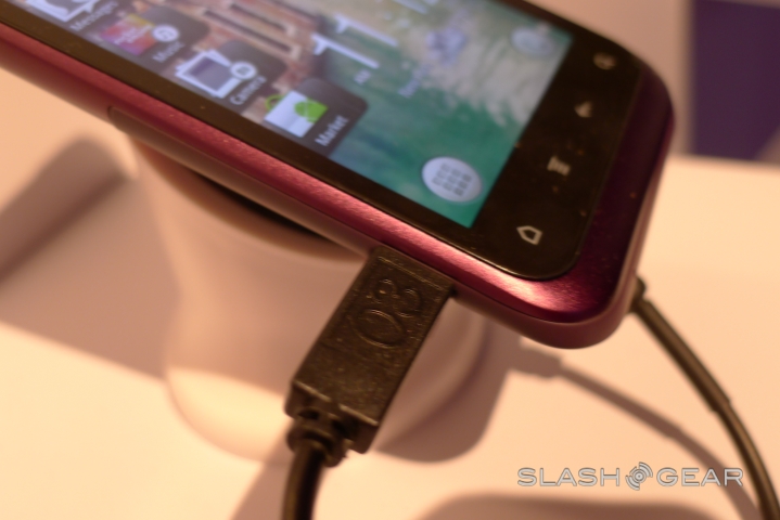 You can't argue with HTC's consistency, either: the wired stereo headset matches, in the same shade of purple, as does the Bluetooth headset and even the odd little "charm" that blinks discretely to warn you there's a call or message incoming. It's eye-catching, but it's hardly new technology; we've seen light-up keychains before, though that the Rhyme's slots into the headphone jack for safe-keeping is neat. Still, the desk cradle is likely more useful overall.