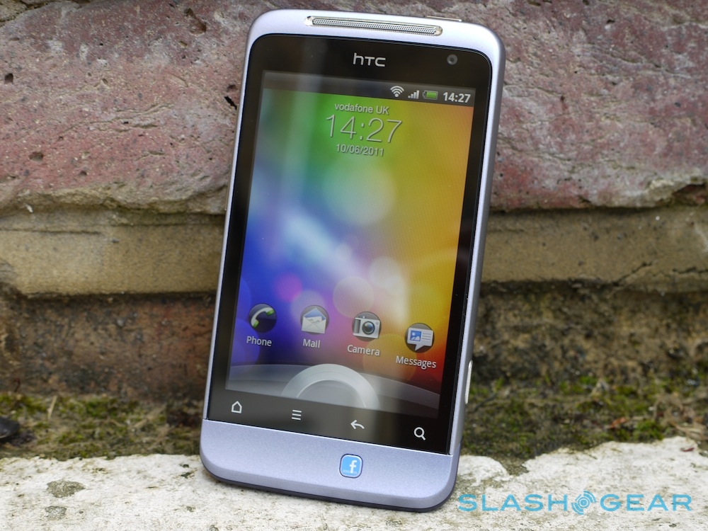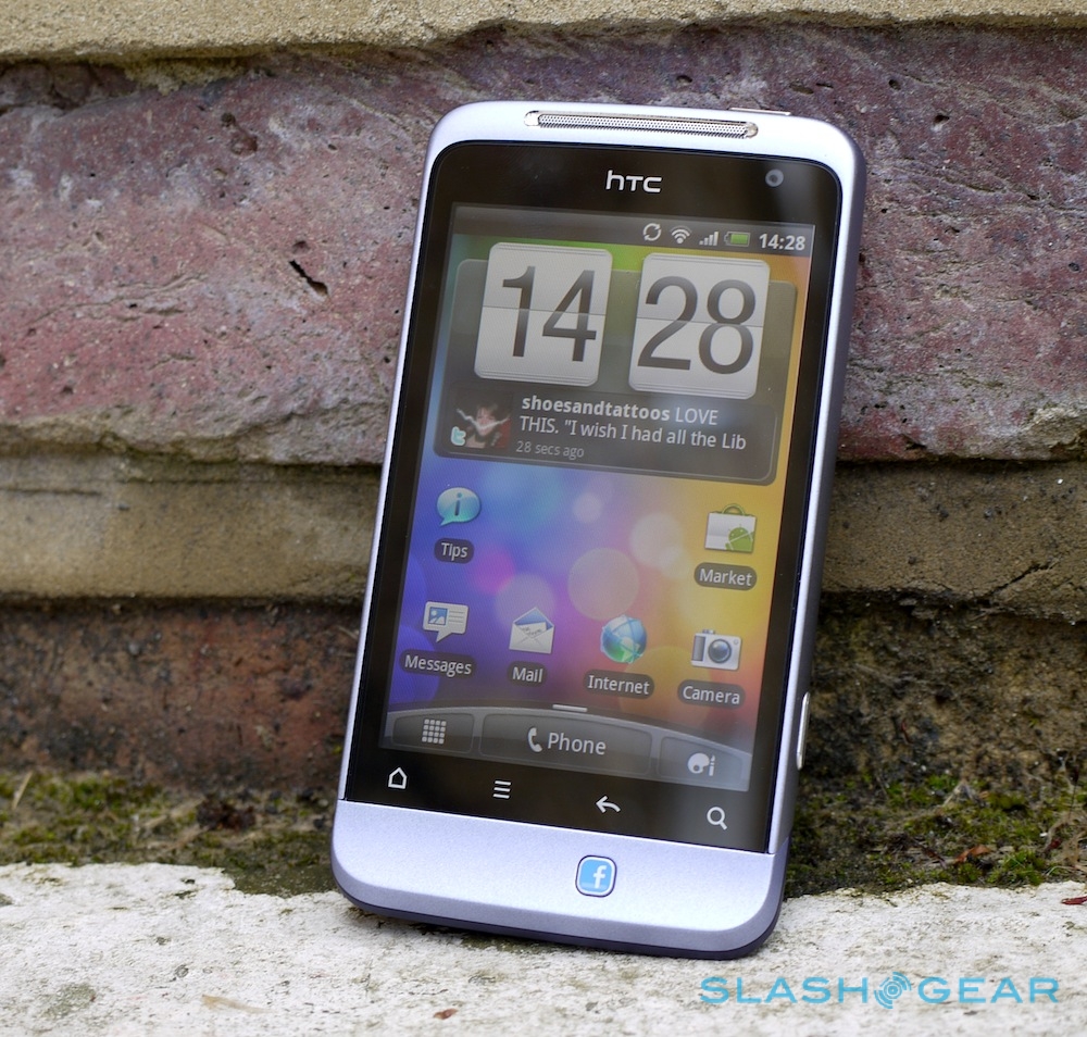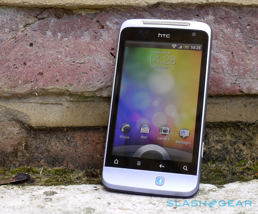 Up front is a 3.4-inch 480 x 320 touchscreen, with the usual row of touch-sensitive Android keys – home, menu, back and search – underneath. On the chin, however, is the new Facebook button, a physical key which can light up depending on when HTC's custom Facebook services can be used. A volume rocker is on the top left-hand side, above a microUSB charge/sync port, while the power/lock button is on the top edge by the 3.5mm headphones socket. Finally, there's a dedicated camera shortcut on the right edge, a rare – and welcome – addition to HTC's Android line-up.