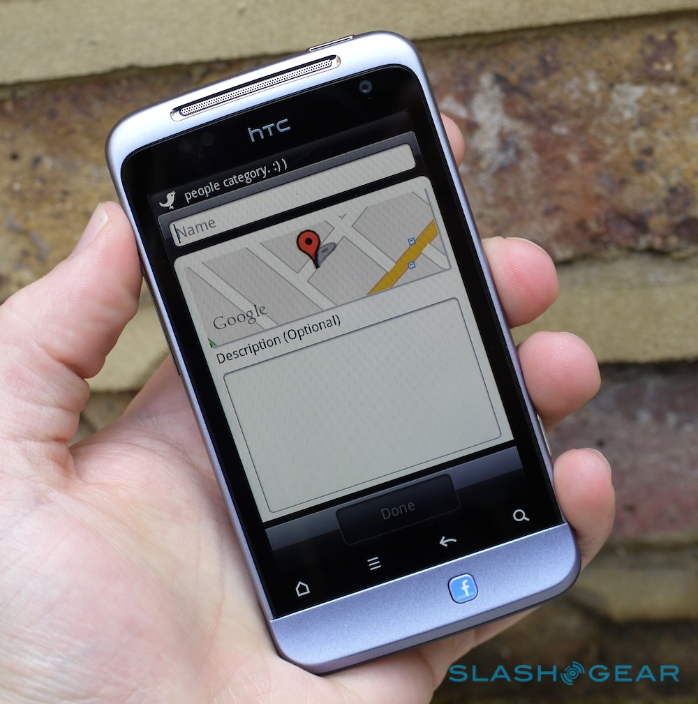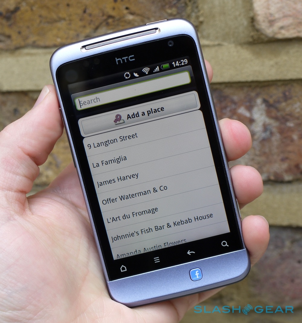 A long-press on the button, meanwhile, and that lets you check in using Facebook Places. You can either choose from a list of nearby locations already registered, or add a new location (complete with a description). It's worth noting that Google's Latitude alternative to Facebook Places is also preloaded, as is normal on Android devices, though there's no way to use the Facebook button shortcut to post to both services.