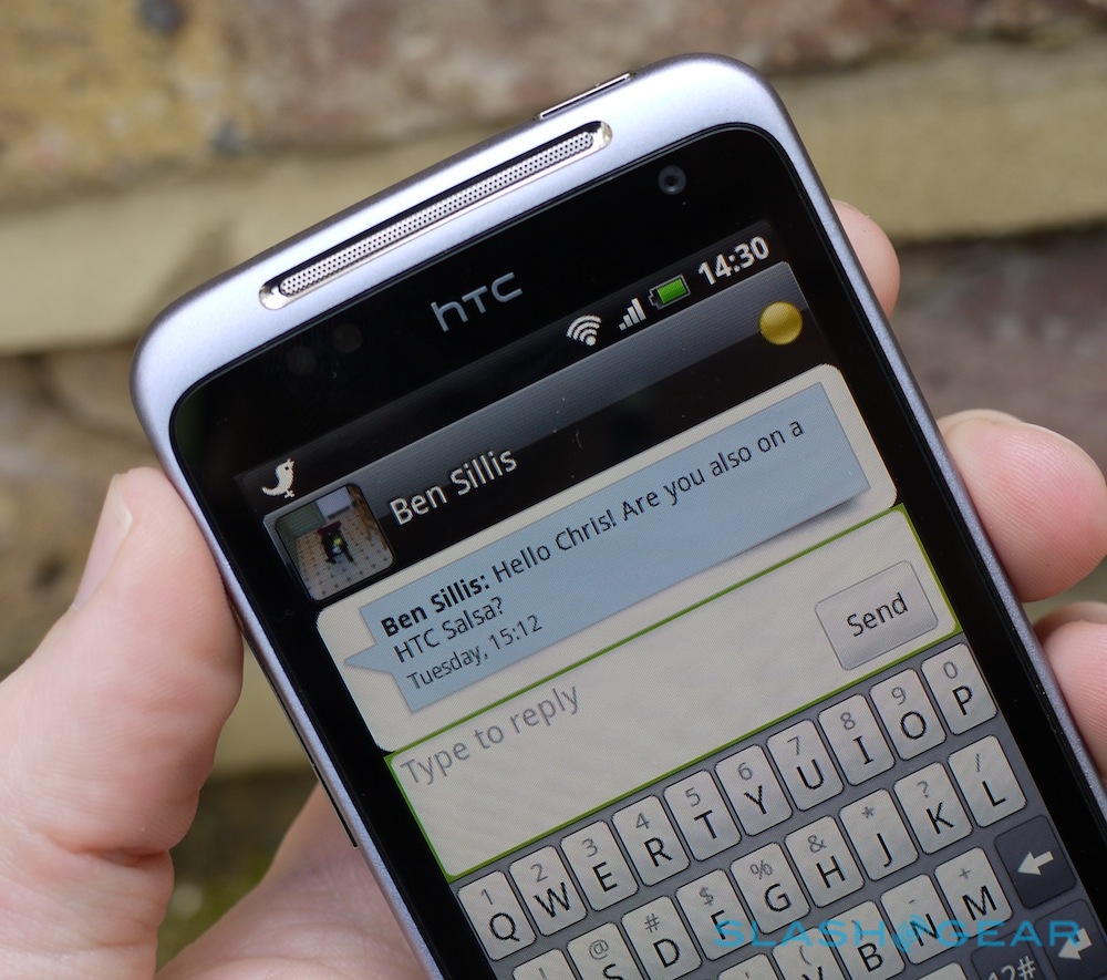 Like HTC's other recent Android handsets, the Salsa runs 2.3.3 Gingerbread. There's a modified version of HTC Sense, too, though it's v2.1 rather than v3.0 as on the Sensation, with a number of Facebook-specific features that other HTC devices won't share.