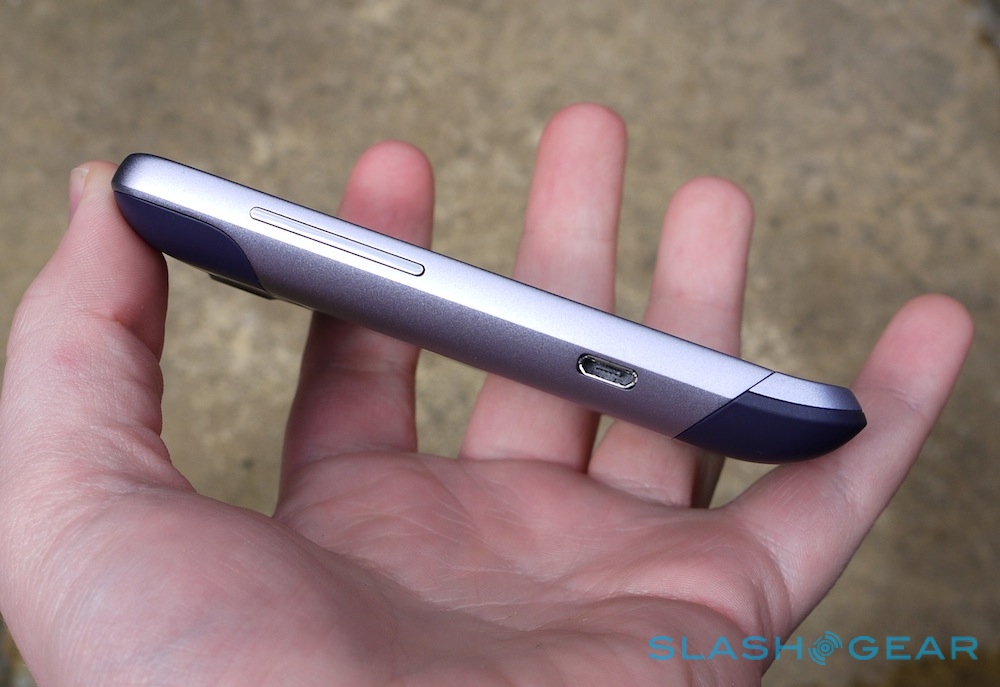 Out of HTC's two Facebook-centric phones, the Salsa is perhaps the less inspiring design-wise. Reminiscent of the HTC Legend, it has a unibody metal chassis with a plastic "chin" section, camera surround and battery cover/antenna, all finished in various shades of purple. Considering it's intended to be a relatively budget device, build quality is surprisingly high: the 4.3 x 2.32 x 0.48 inch, 120g handset is just as creak-free as the range-topping Sensation.