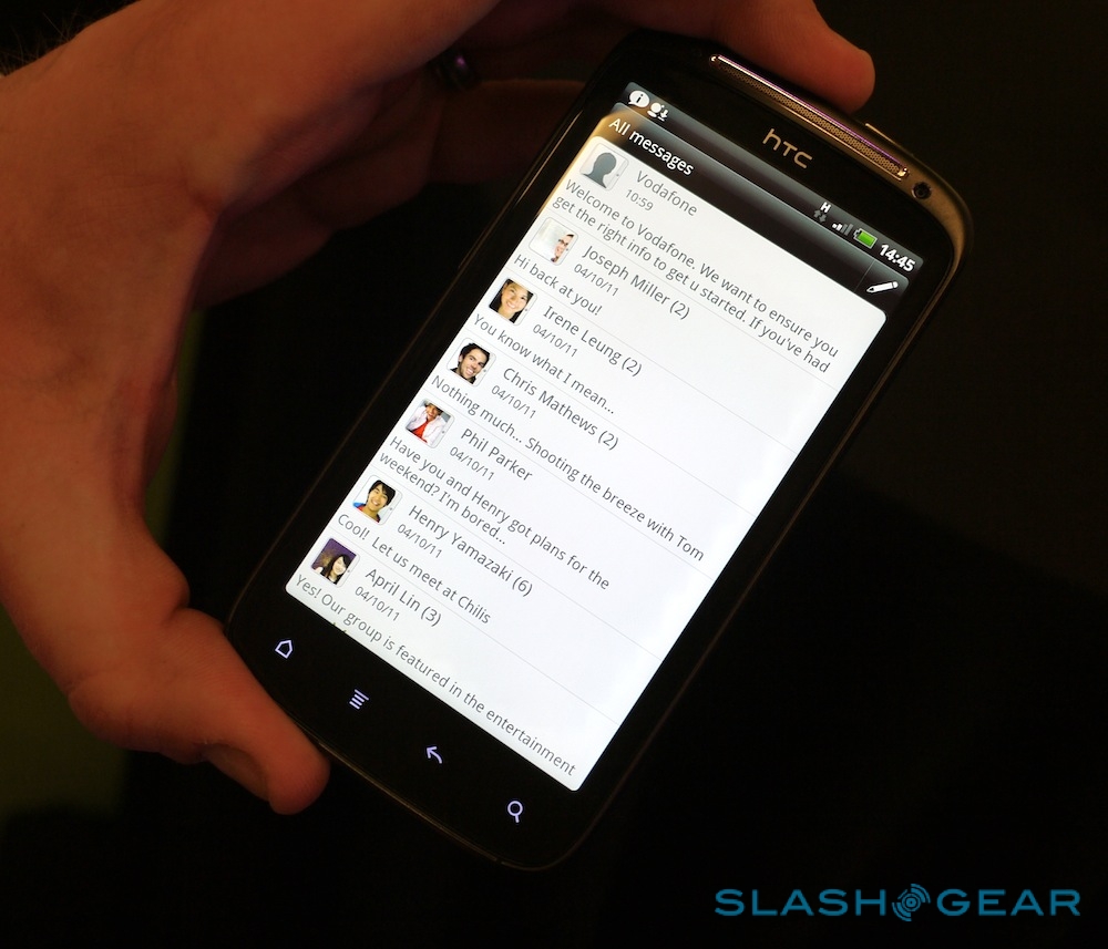 There's also no sign of the custom HTC video chat app demonstrated at MWC 2011, which the company tells us is because it still hasn't managed to gain carrier approval as yet. Carriers are wary of the data load, it seems, though the Sensation's front-facing camera can still be used with Skype and other video calling apps available in the Android Market. Right now, though, there's no timescale for the HTC app's release.