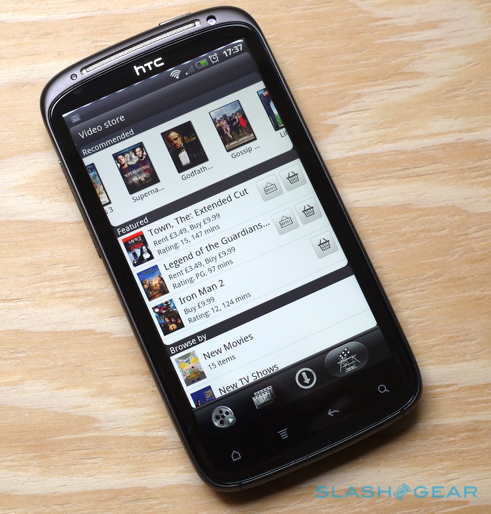 Just as on the Flyer, Watch allows access to purchased or rented movies and TV shows, complete with streaming trailers (that can be viewed over 3G or WiFi connections; full content downloads can only be made over WiFi). If you've already got an account from your Flyer – or, indeed, another HTC phone when the company rolls Watch out on other devices – then you can access existing content you've bought (though not rented) on the Sensation. On our UK unit, movies were priced between £7.99 and £9.99 to purchase or £2.49 to £3.49 to rent; TV shows were generally £1.49 to buy.