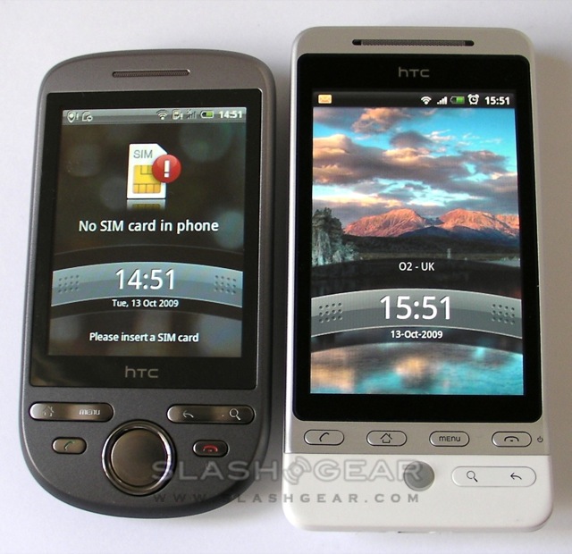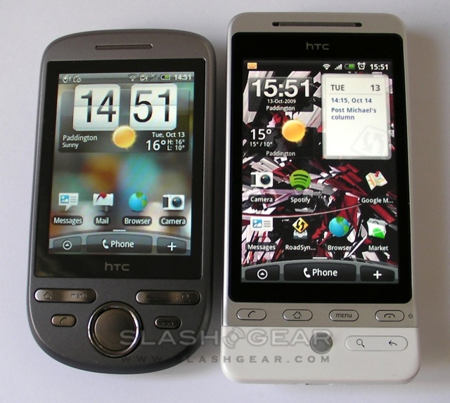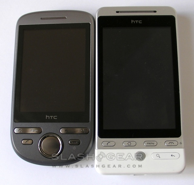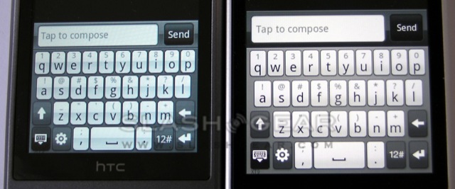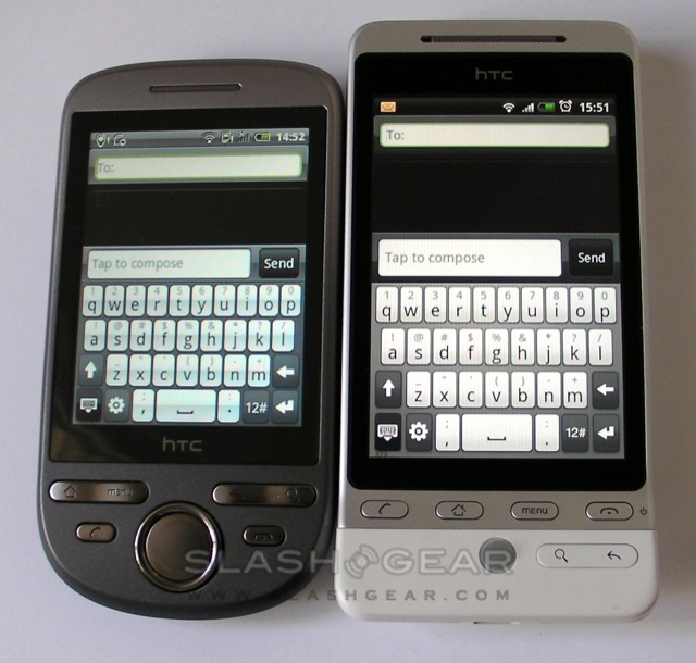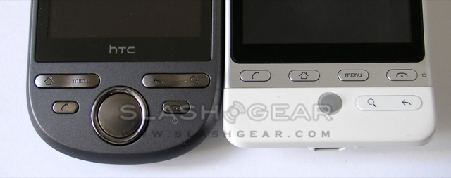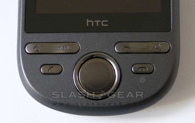 The resistive display does have a little noticeable flex to it, but it's still relatively solid. Still, it obviously requires more pressure – and accuracy – than, say, the HTC Hero's capacitive touchscreen. HTC's choice of a smaller panel than the Hero (which has a 3.2-inch display) also means the onscreen keyboard is on the cramped side; we'll be keeping track of how many more typos we make, and whether the company's auto-correct – which impressed us on the Hero – can keep up.