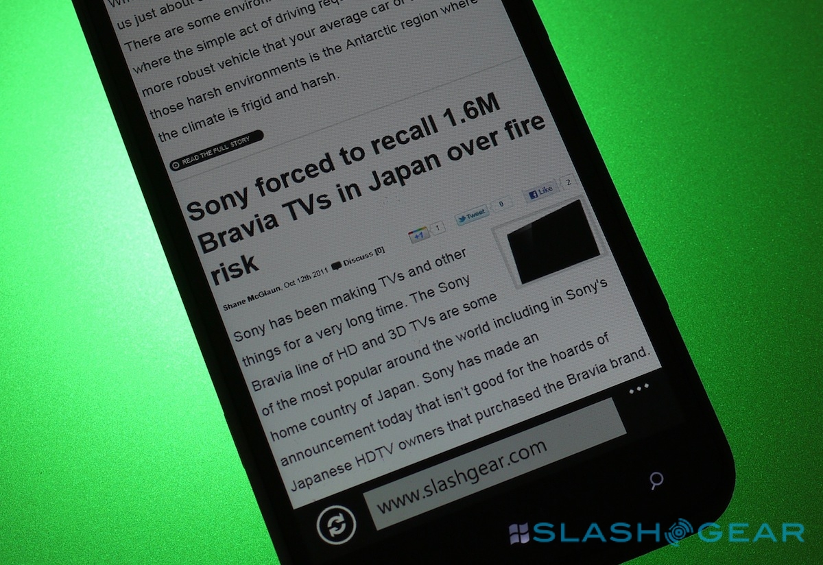 Performance from the 1.5GHz processor is slick, with menus and lists scrolling lag-free, image and webpage pinch-zooming smooth and no issues with the speed at which apps and webpages load. Mango brings its own performance improvements too, and the combination of software refinements and the boosted processor add up a device that had trouble handling whatever we threw at it. Microsoft has said it is confident that Windows Phone on a single-core is just as fast as rival platforms on dual-cores, and right now that doesn't seem too unbelievable.