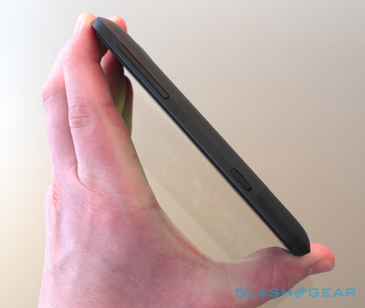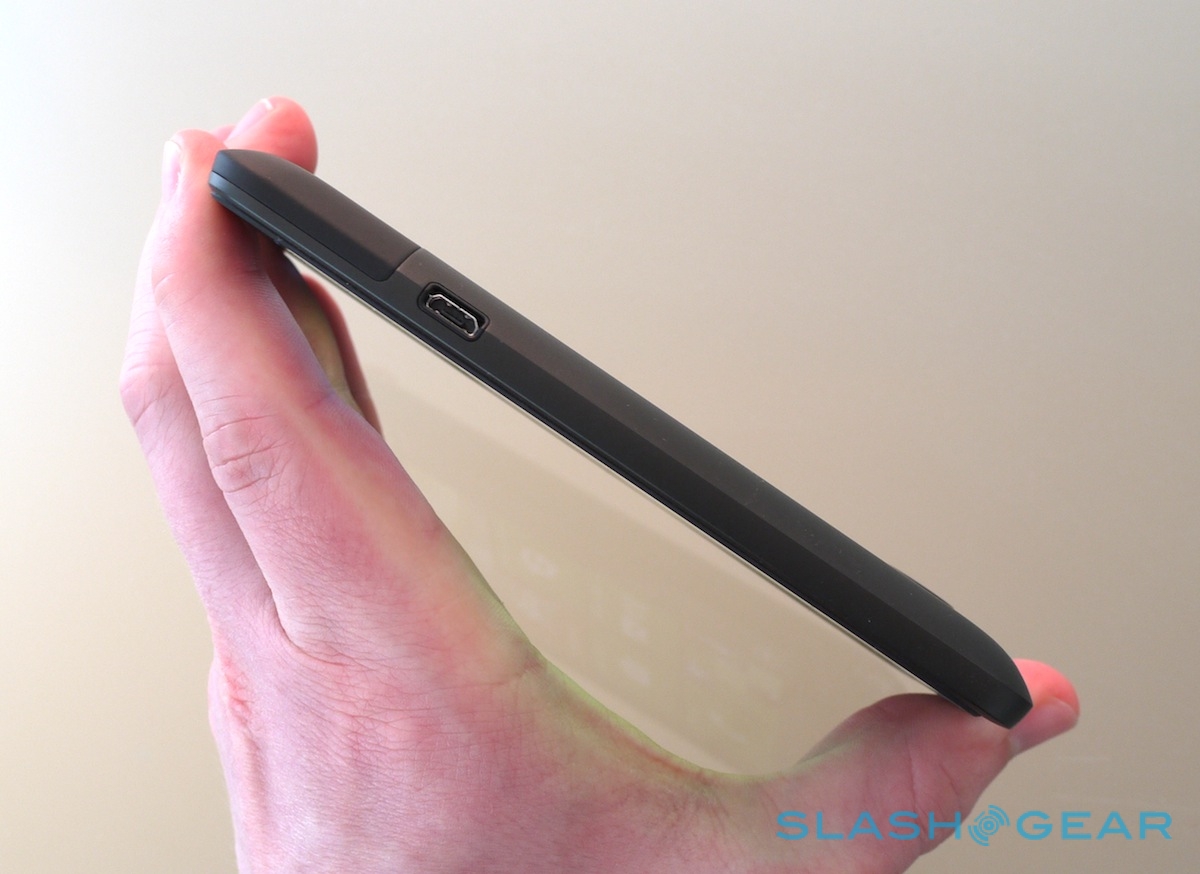 It's undoubtedly a large phone – 131.5 x 70.7 x 9.9 mm and 160g – but the combination of curves and angles in the sides mean it fits into average sized hands reasonably well. Physical controls are limited to power/standby on the top edge – alongside a 3.5mm headphone jack – then a volume rocker and a camera shortcut on the right edge, along with the touch-sensitive back, Start and search keys under the display. A microUSB port does charge and sync duty on the lower left edge, and you get two cameras: 8-megapixels on the back and 1.3-megapixels on the front.