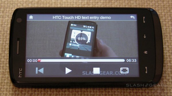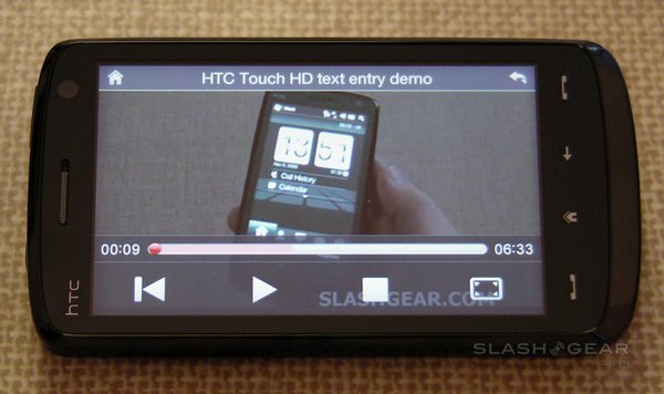 Video playback had mixed results. We had high hopes for the Touch HD's 480 x 800 display, and indeed it's richly colored, bright and shows decent, if a little murky, black levels. Playback of 720p high-definition WMV files proved a literal non-starter; we then tried a 1000kbps, 25fps, 768 x 576 WMV file, the audio of which was no problem but the picture stuttered. A 650kbps, 29fps, 320 x 240 video played with no problems at all, but a 740kbps 640 x 480 file suffered jerky video. Scaled down to 545kbps 640 x 480 the video was reasonable.