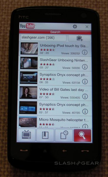 The standalone YouTube application (which you can see in our demo video) offers access to the top rated, featured and most viewed videos across all of the media site's categories (sports, music, etc.) The only setting on offer is the choice between high quality or fast download (or an auto-select option which switches based on connection speed). There's also access to bookmarks and history, as well as the ability to search videos.
