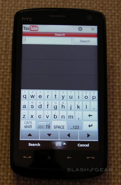 Natively, the Touch HD lacks general screen rotation; the option is only available in the Opera browser, together with when the camera is being used or photos being viewed. We tried third-party app GSen (which is freeware), which uses the accelerometer to track orientation and extend that functionality to other apps; it works well, particularly when messaging. Rotating the phone closes the on-screen keyboard, but when re-opened it automatically changes to the horizontal layout as seen in the browser. GSen's developers suggest that certain apps won't play nicely with the software, but so far it's only been TouchFLO 3D and the YouTube client that have refused to rotate. It does, however, screw up the YouTube video rotation; if you use GSen, you'll need to add "#window(youtube)" into the app's config file (instructions are included with the program).