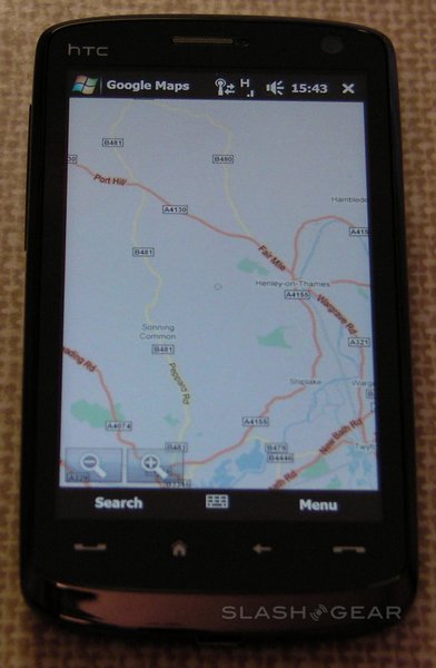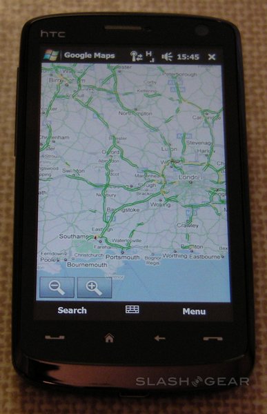 Google Maps is preinstalled on the Touch HD, and take excellent advantage of a display larger than that of some standalone satnavs. As with Opera, zooming in can be triggered by double-tapping the screen (either with finger or stylus) and the page dragged around with a fingertip; unlike Opera, to zoom out you must use the translucent zoom controls in the bottom left-hand corner. Rendering is fast and, in our experience, dependent more on your connection speed than the smartphone's processor.