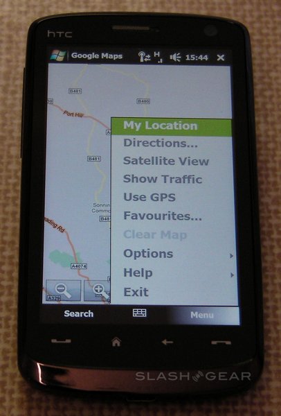 The HTC Touch Diamond has been criticised for its GPS performance, which can lag behind actual position when moving at speed. Hopes were high for the Touch HD to avoid such a fate, but unfortunately that doesn't appear to be the case. Whether from the processor (the same 528MHz Qualcomm MSM7201A as in the Diamond) or the GPS receiver itself, when driving the indicated position is always 50-80ft behind. This makes navigating via the on-screen directions incredibly difficult. At lower speeds, such as when walking, the Touch HD has no problems, just like the Diamond. We're still attempting to get hold of some alternative GPS programs, such as TomTom or Garmin Mobile XT, and will update this review when we've had an opportunity to try them out.