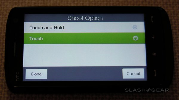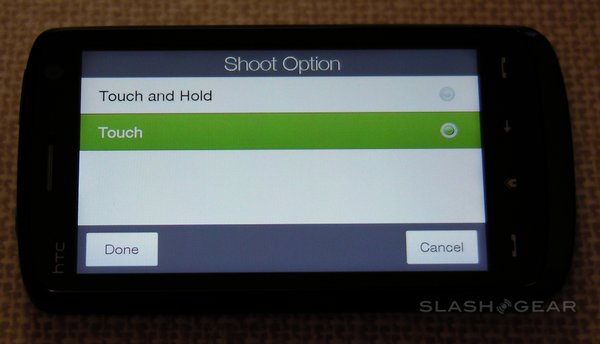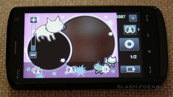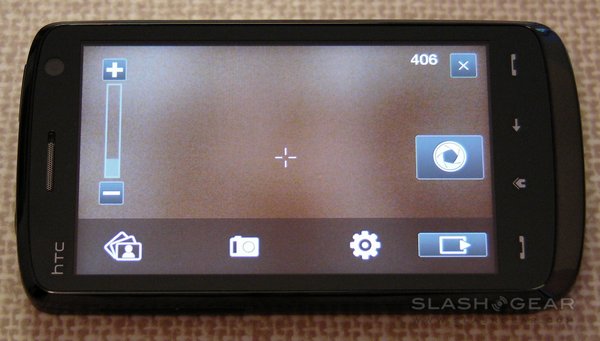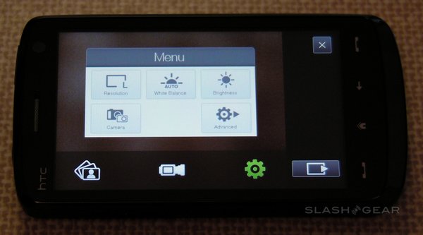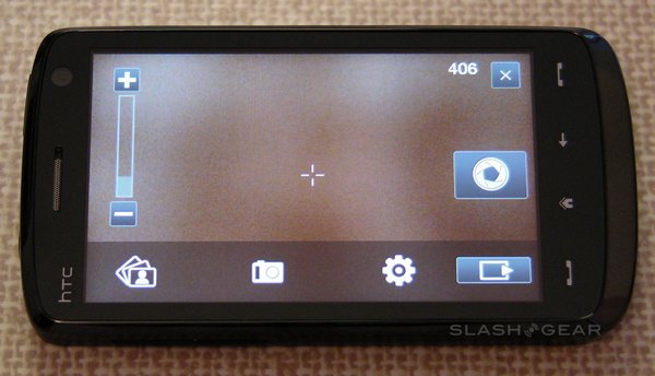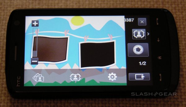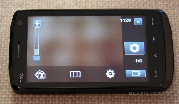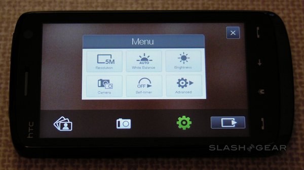 The Touch HD has a 5-megapixel camera with autofocus, though sadly not even an LED flash, never mind a Xenon one. It's capable of stills and video recording, with reasonable quality in both. Camera options include a choice of resolutions – from 'M' (320 x 240) up to full 5-megapixel – and white-balance settings – auto, day, night, incandescent and fluorescent – together with adjustable brightness. The whole display is used as a viewfinder, while focus points can set by tapping any point; an on-screen shutter release replaces a hardware key.